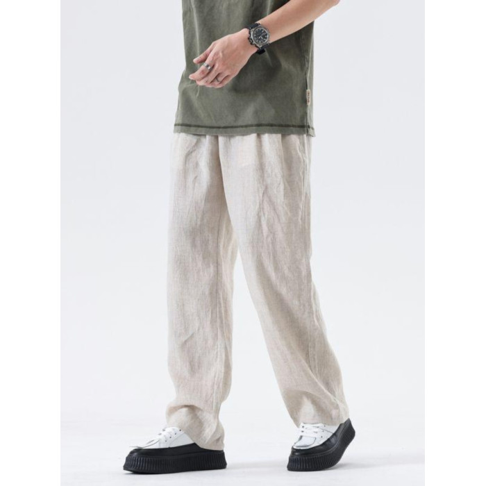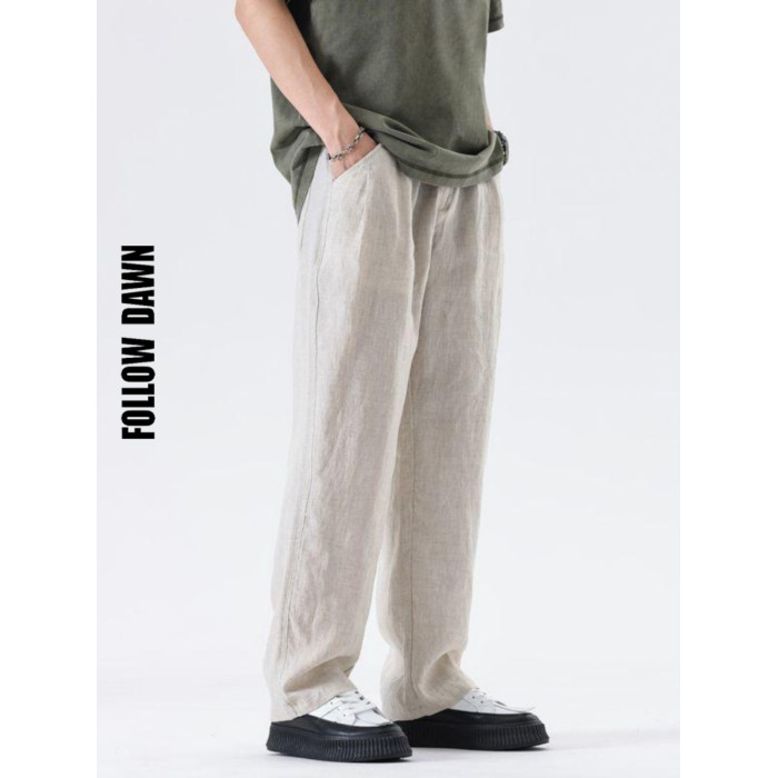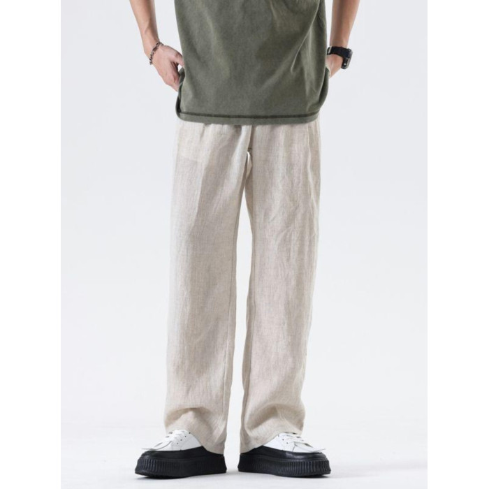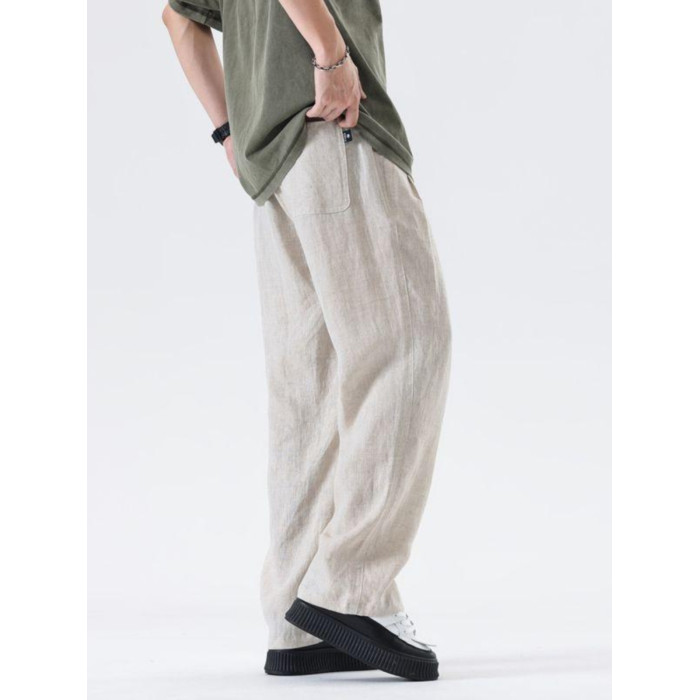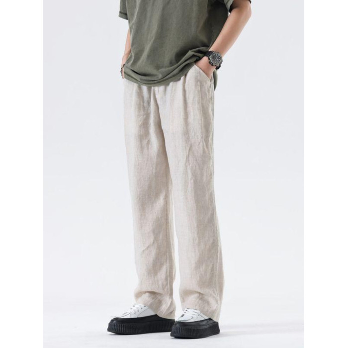 2025夏季新款薄款冰絲棉麻休閒直筒長褲男寬松涼感透氣濶腿速乾褲