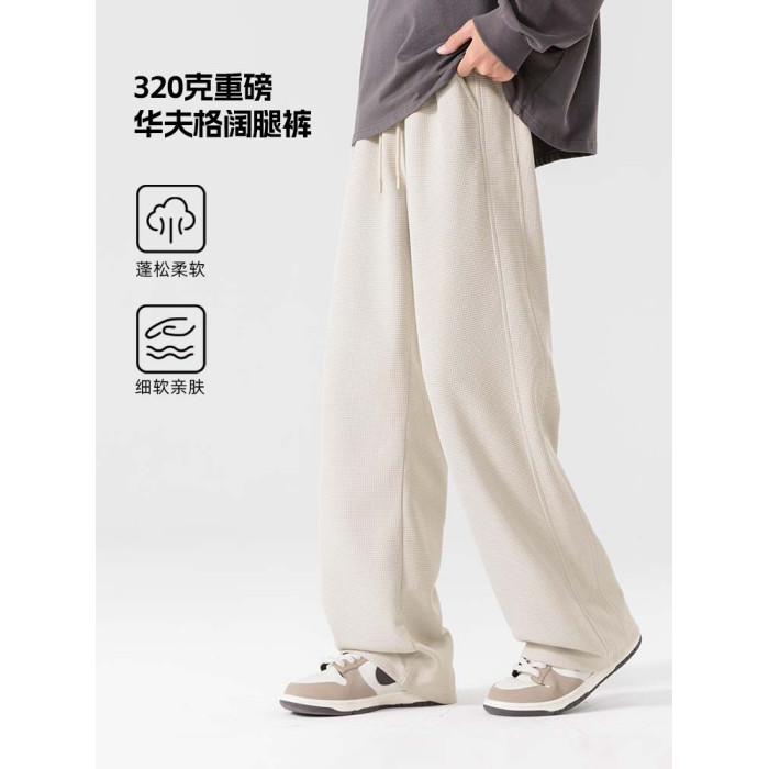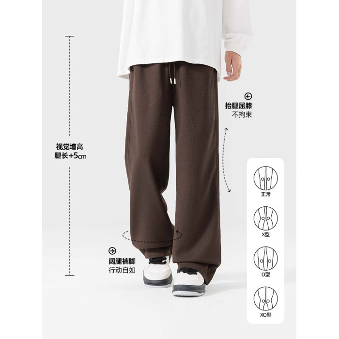 啄木鳥華夫格直筒褲子男秋季新款咖色復古長褲男士高級感休閒褲Y