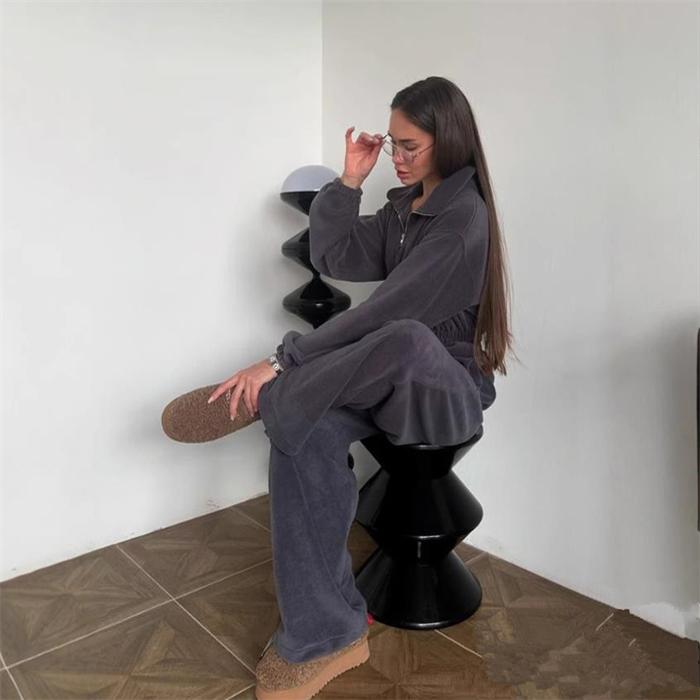 歐美時尚休閒長袖衛衣連體衣褲長褲套裝女 Zipper Jumpsuit Women