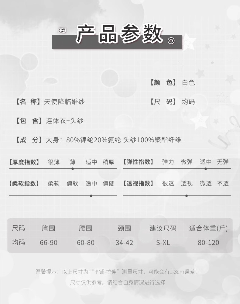 白色【連體衣+頭紗】+白色開口襪