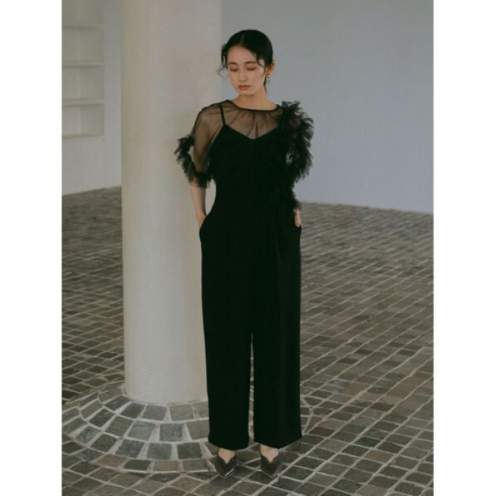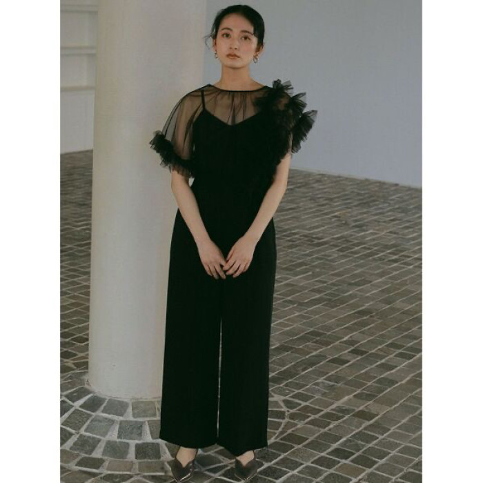 L@GUN@MOON 月亮家 重磅重工薄紗露肩不對稱設計可拆卸連體衣褲