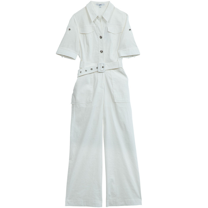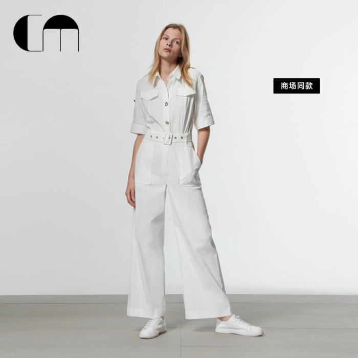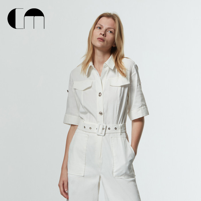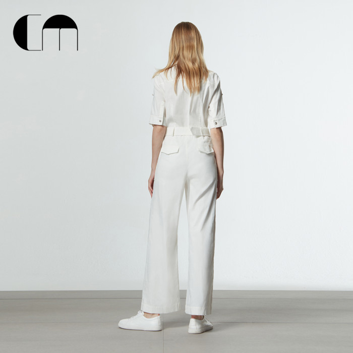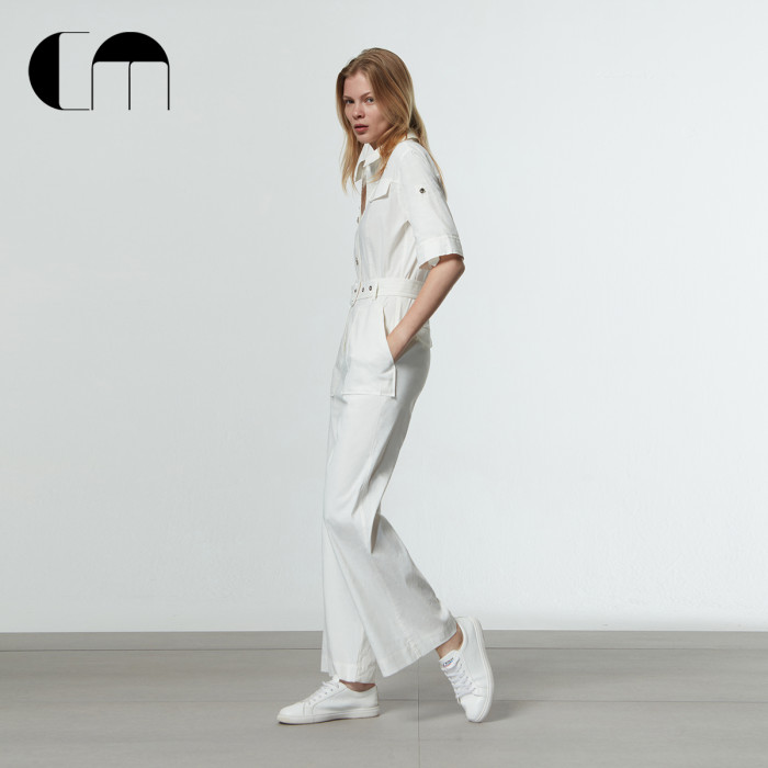 COMME MOI呂燕設計師春夏女士工裝風休閒亞麻高腰連體衣褲長褲