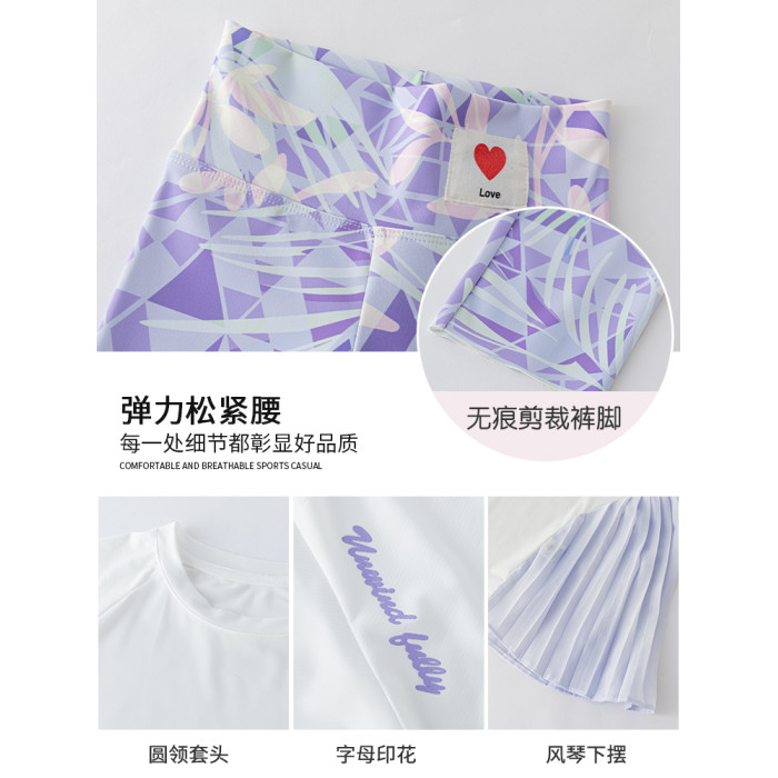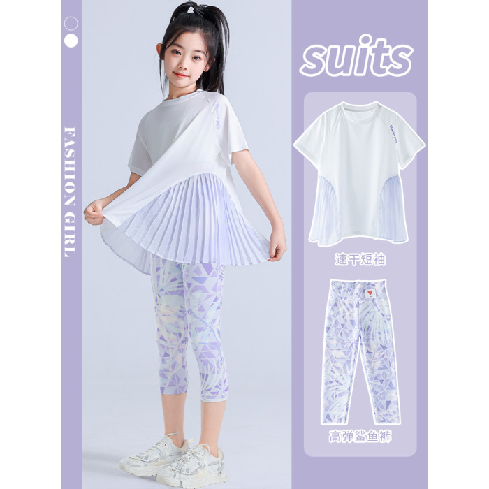 女童速乾衣套裝兒童夏季運動服羽毛球打底褲女大童跑步裝瑜伽女孩