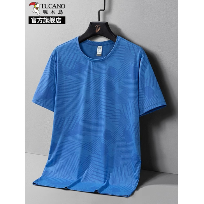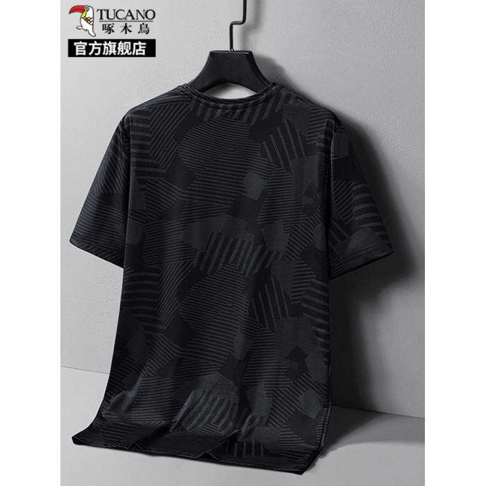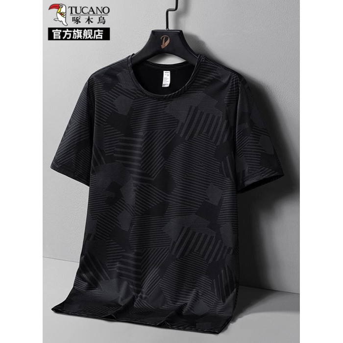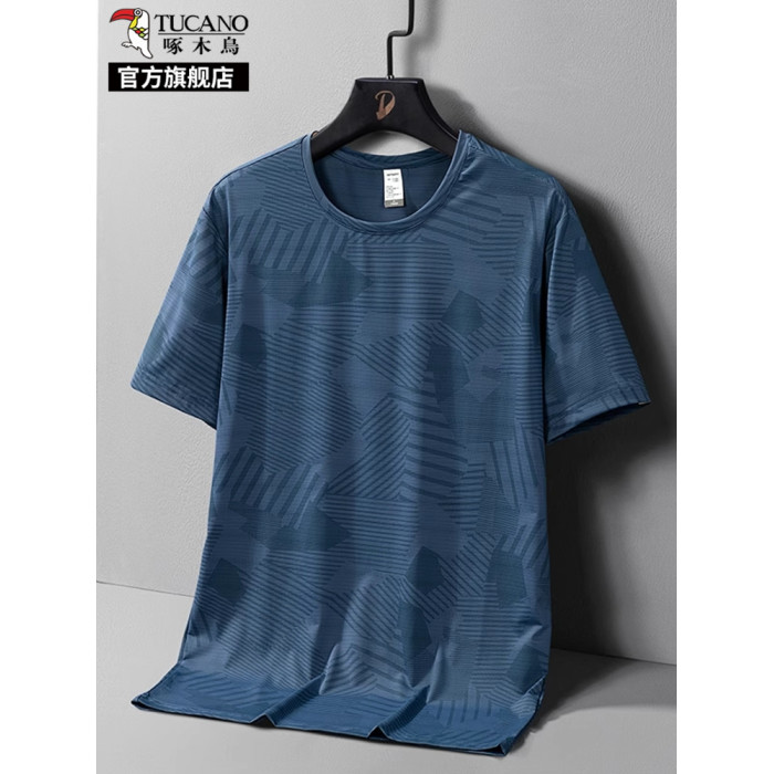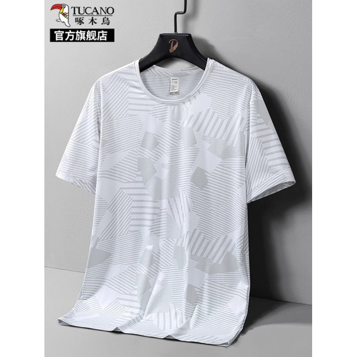 啄木鳥冰絲速乾短袖t恤男士夏季薄款2025新款中老年爸爸男裝上衣K