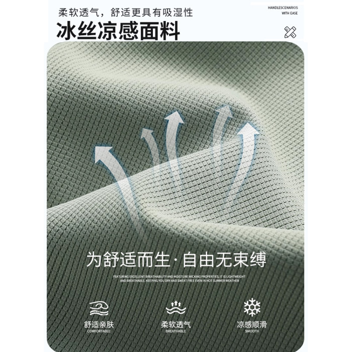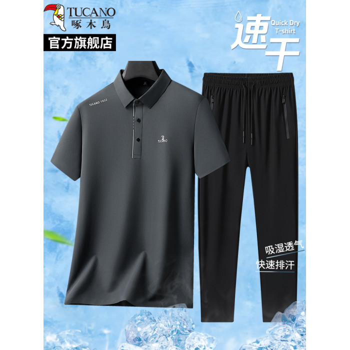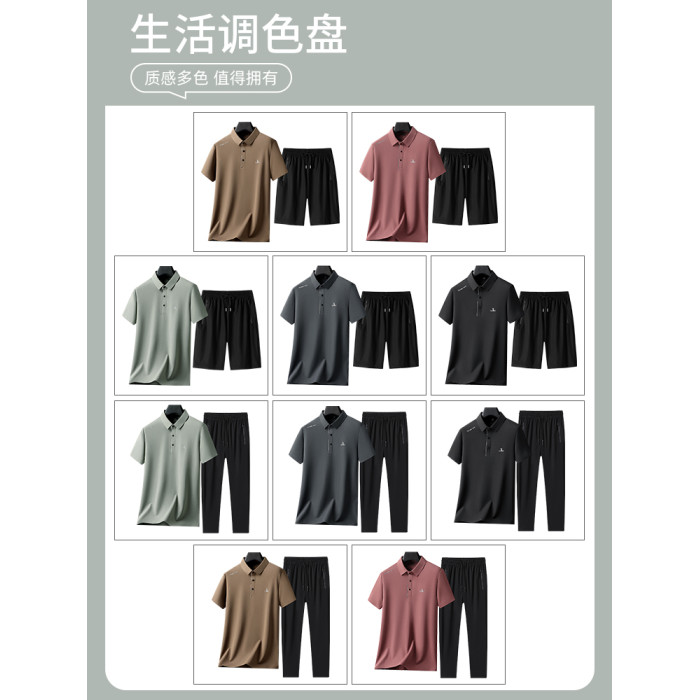 啄木鳥2025夏季新款冰絲套裝男短袖t恤短褲運動休閒中年爸爸父親