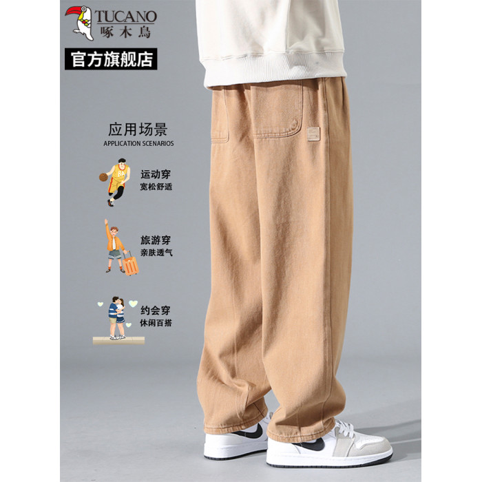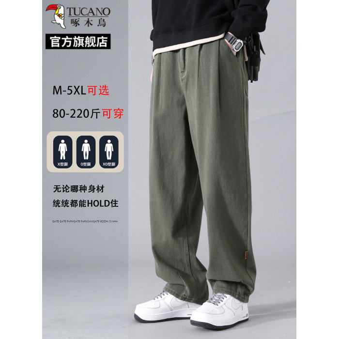 啄木鳥2025夏季薄款透氣休閒褲子男士工裝大碼直筒濶腿褲寬松長褲