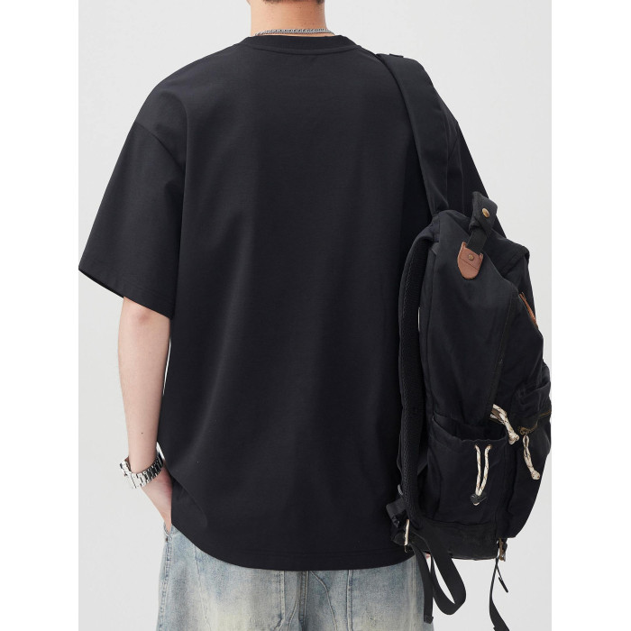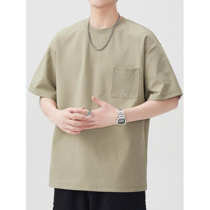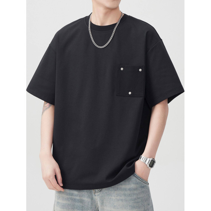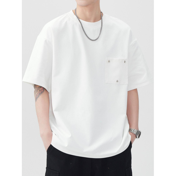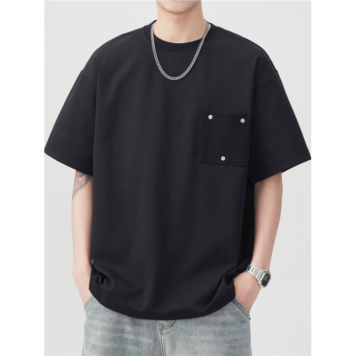 美式潮牌撞釘口袋短袖t恤男士夏季新款寬松休閒設計感圓領體恤衫