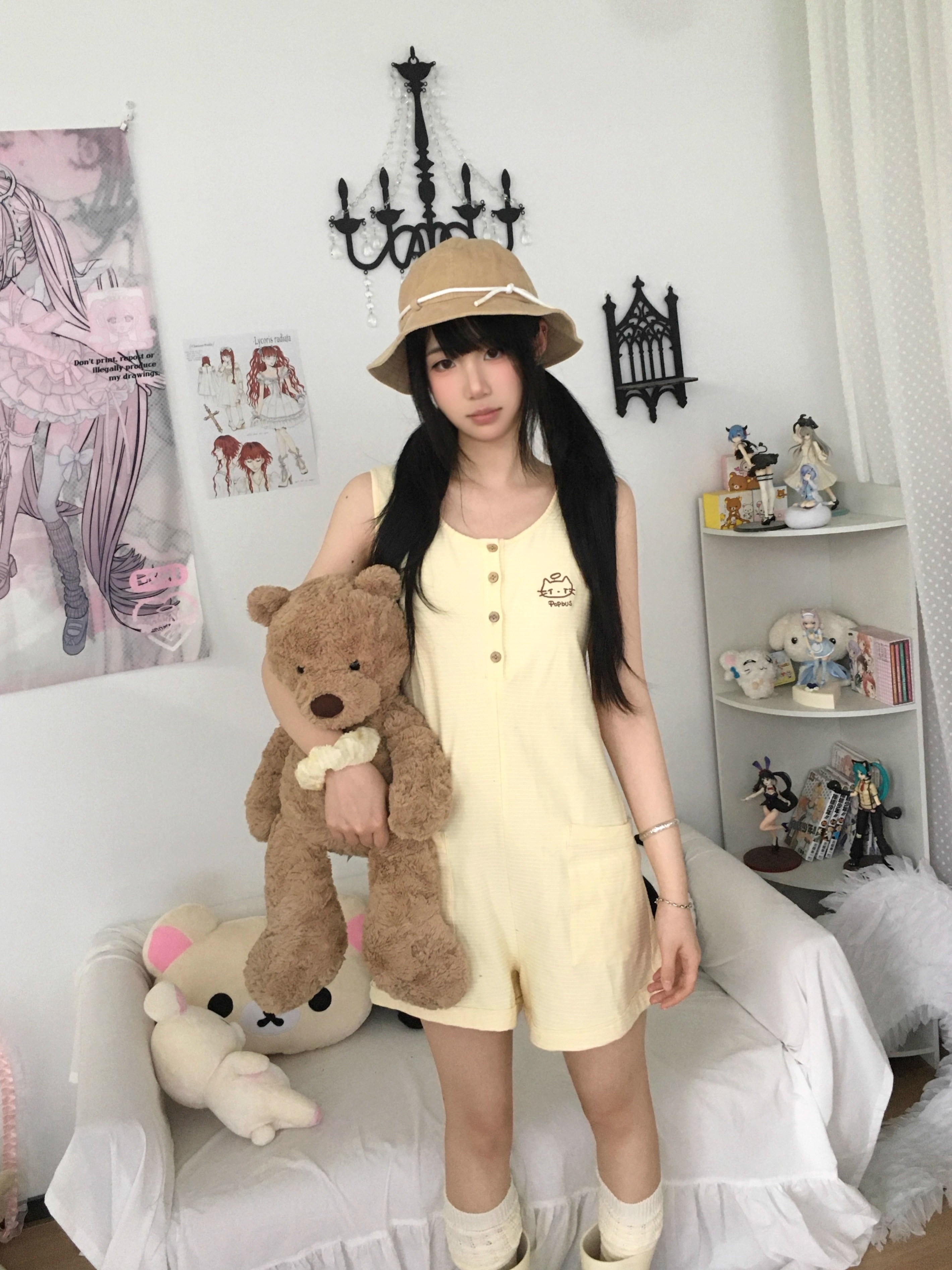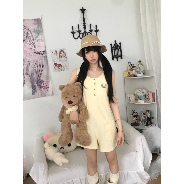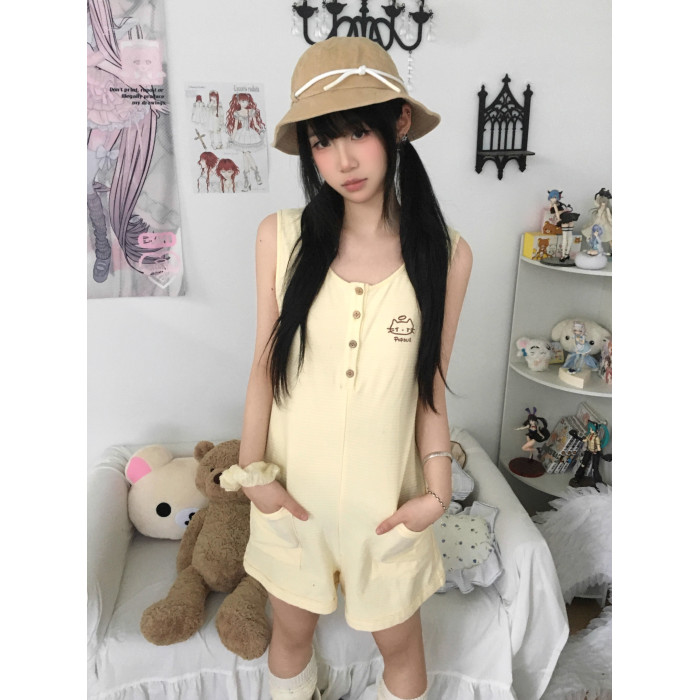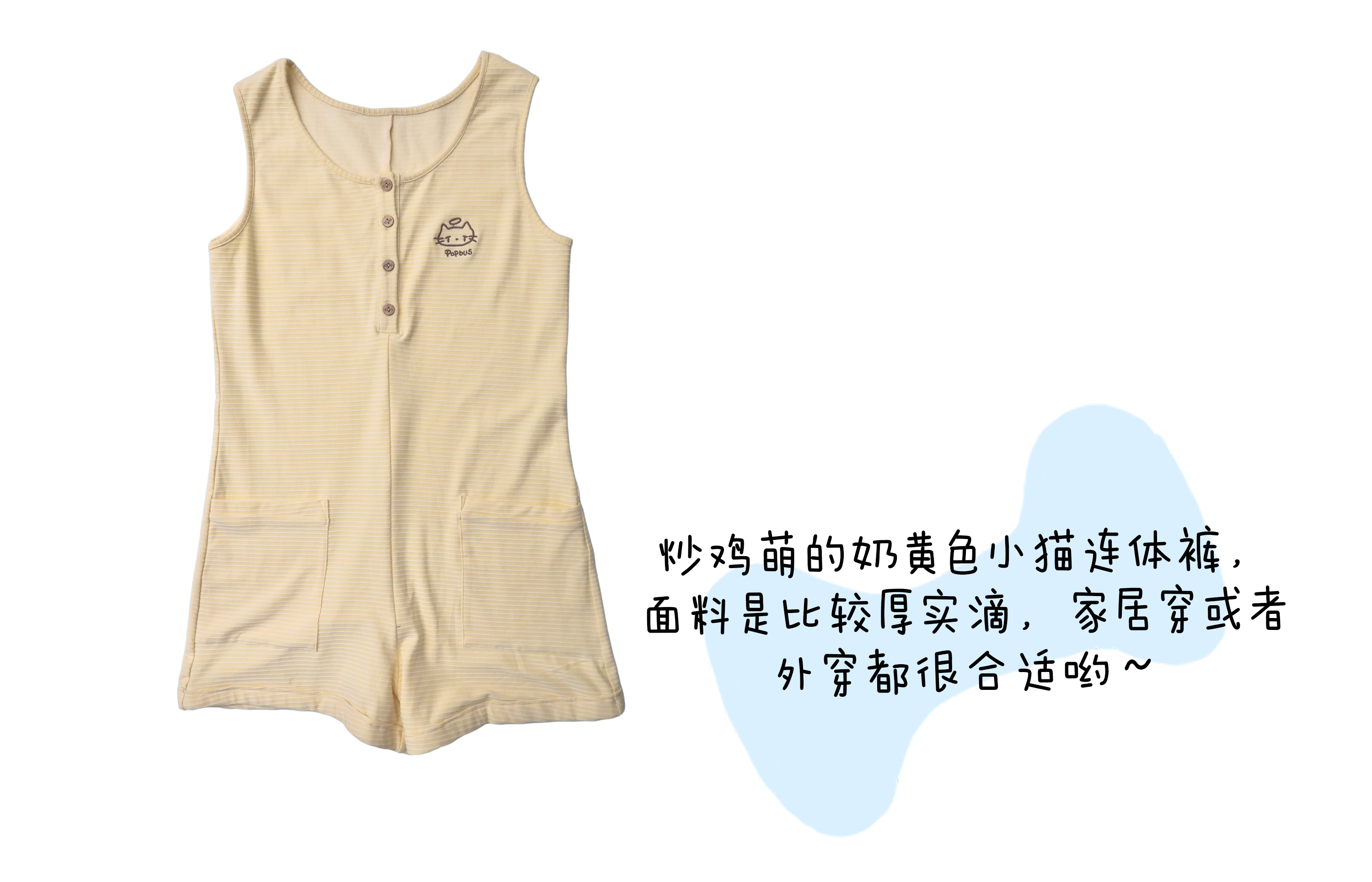 Popbus 原創可愛奶黃色小貓連體衣短褲睡衣可居家可外穿 泡泡巴士