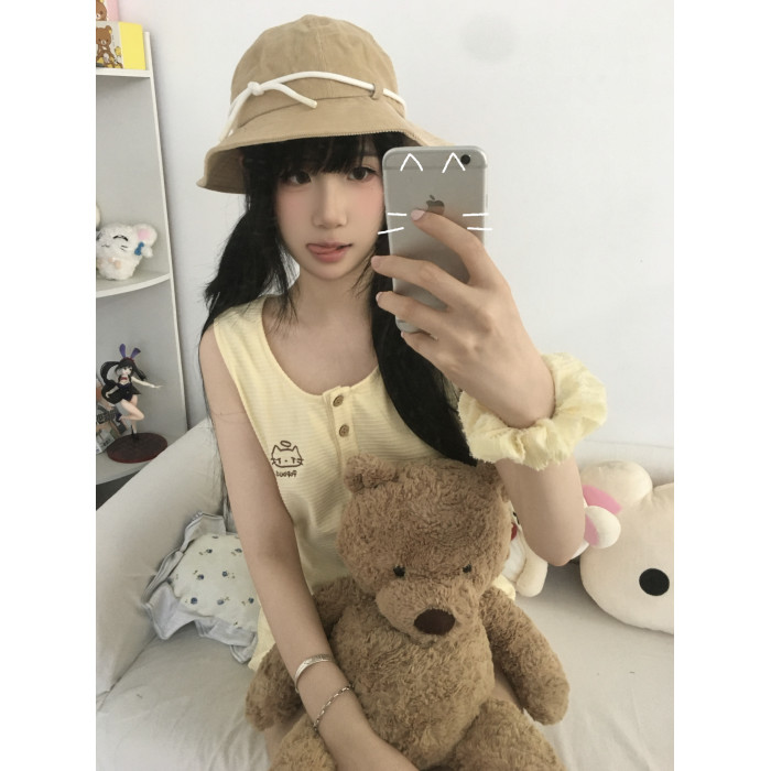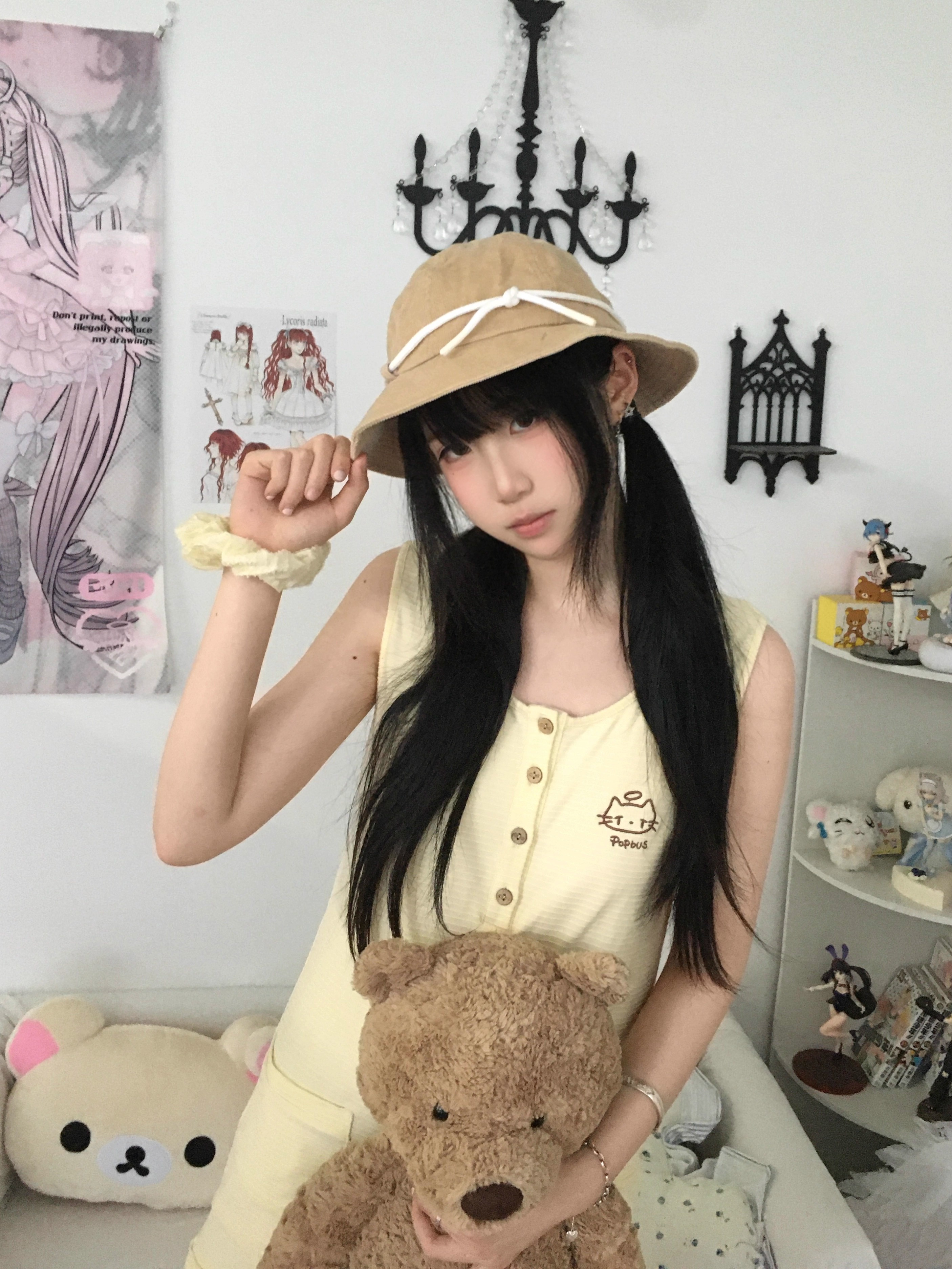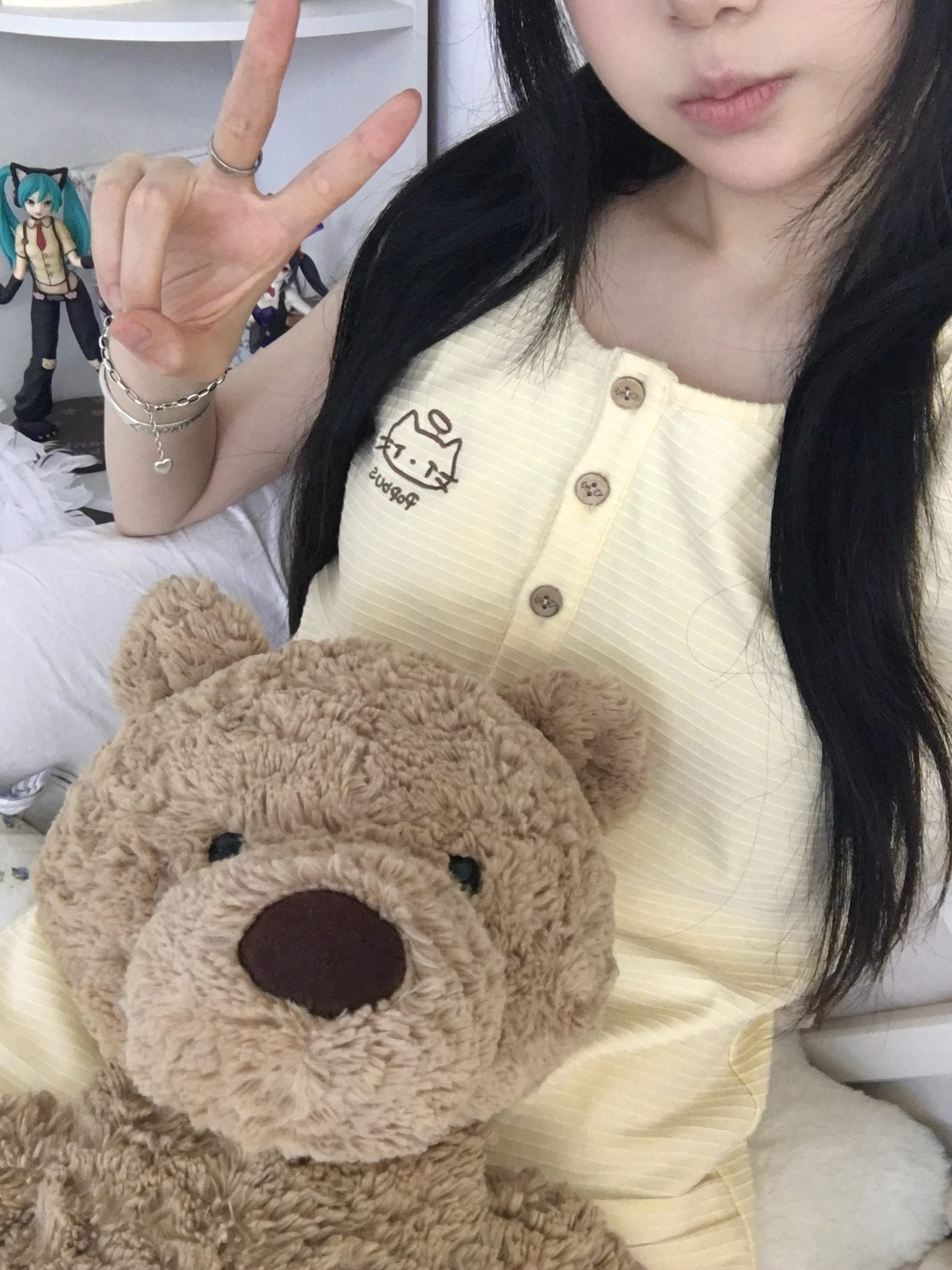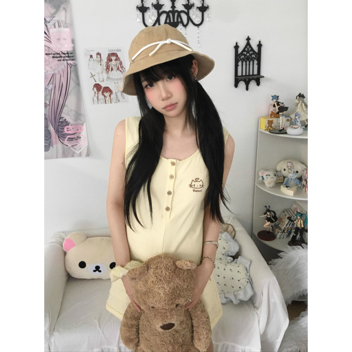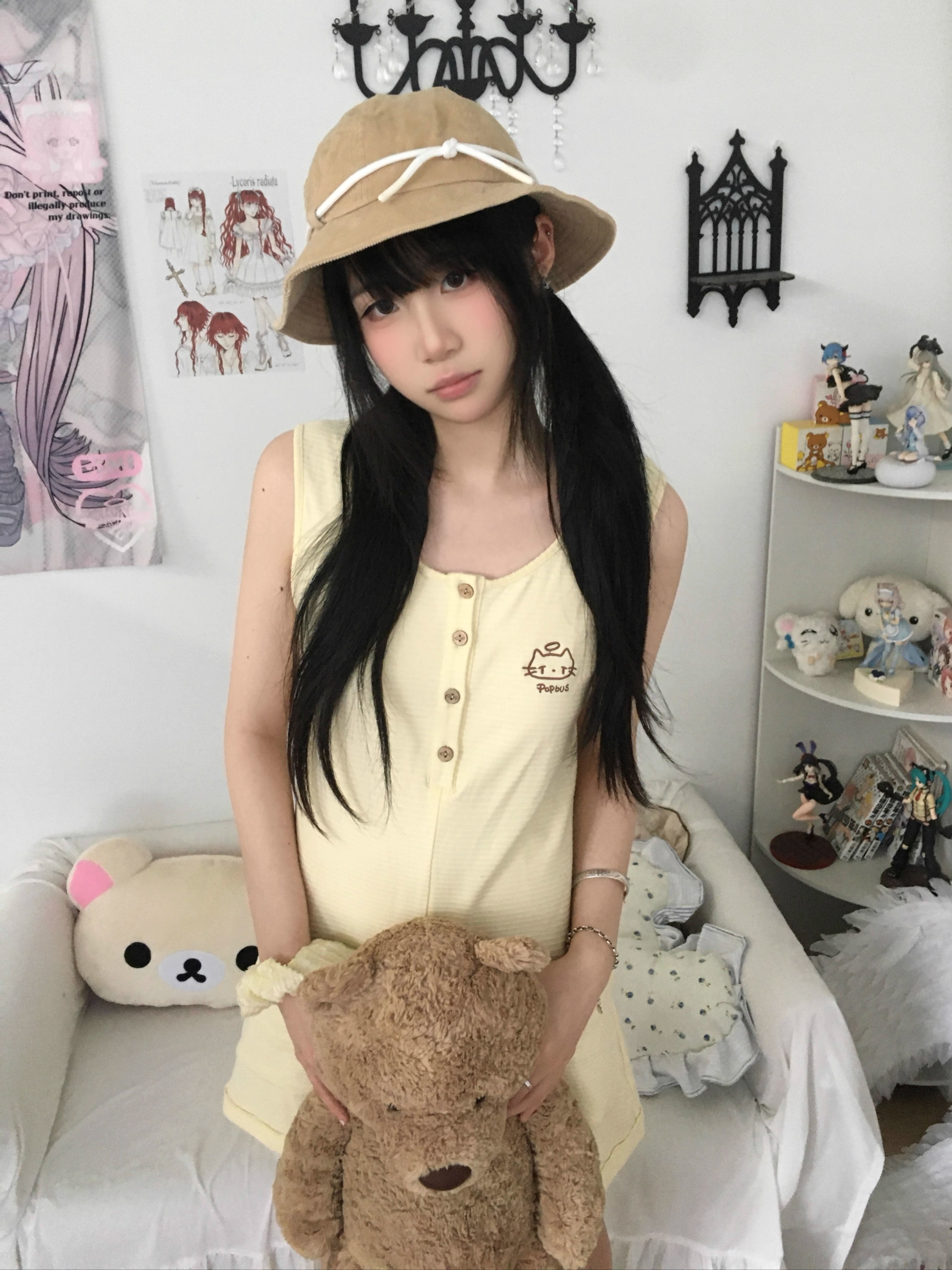 Popbus 原創可愛奶黃色小貓連體衣短褲睡衣可居家可外穿 泡泡巴士