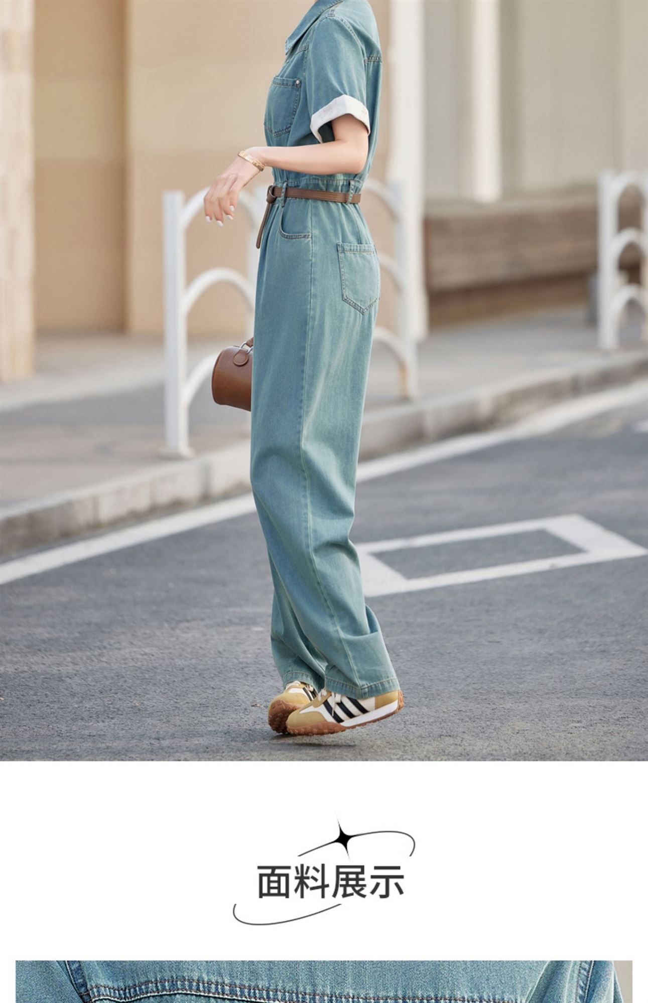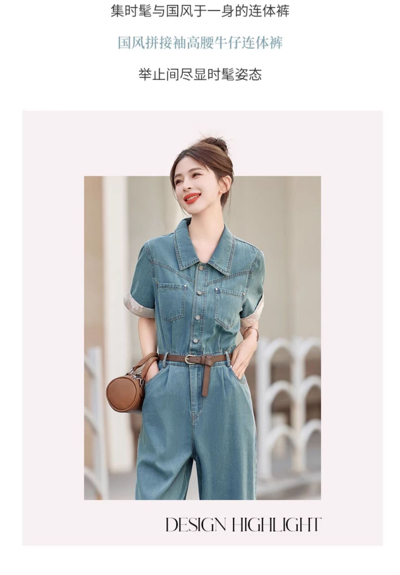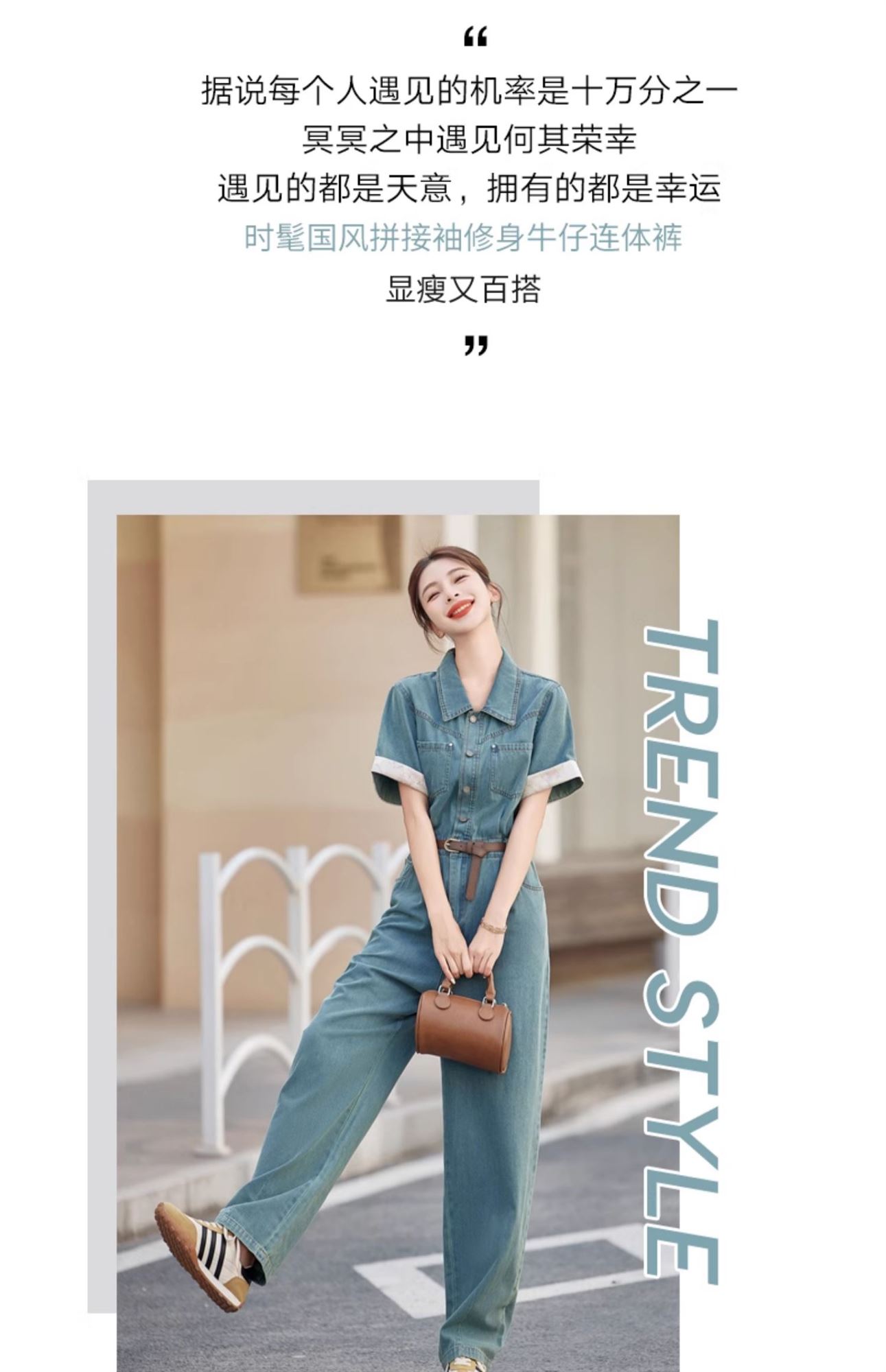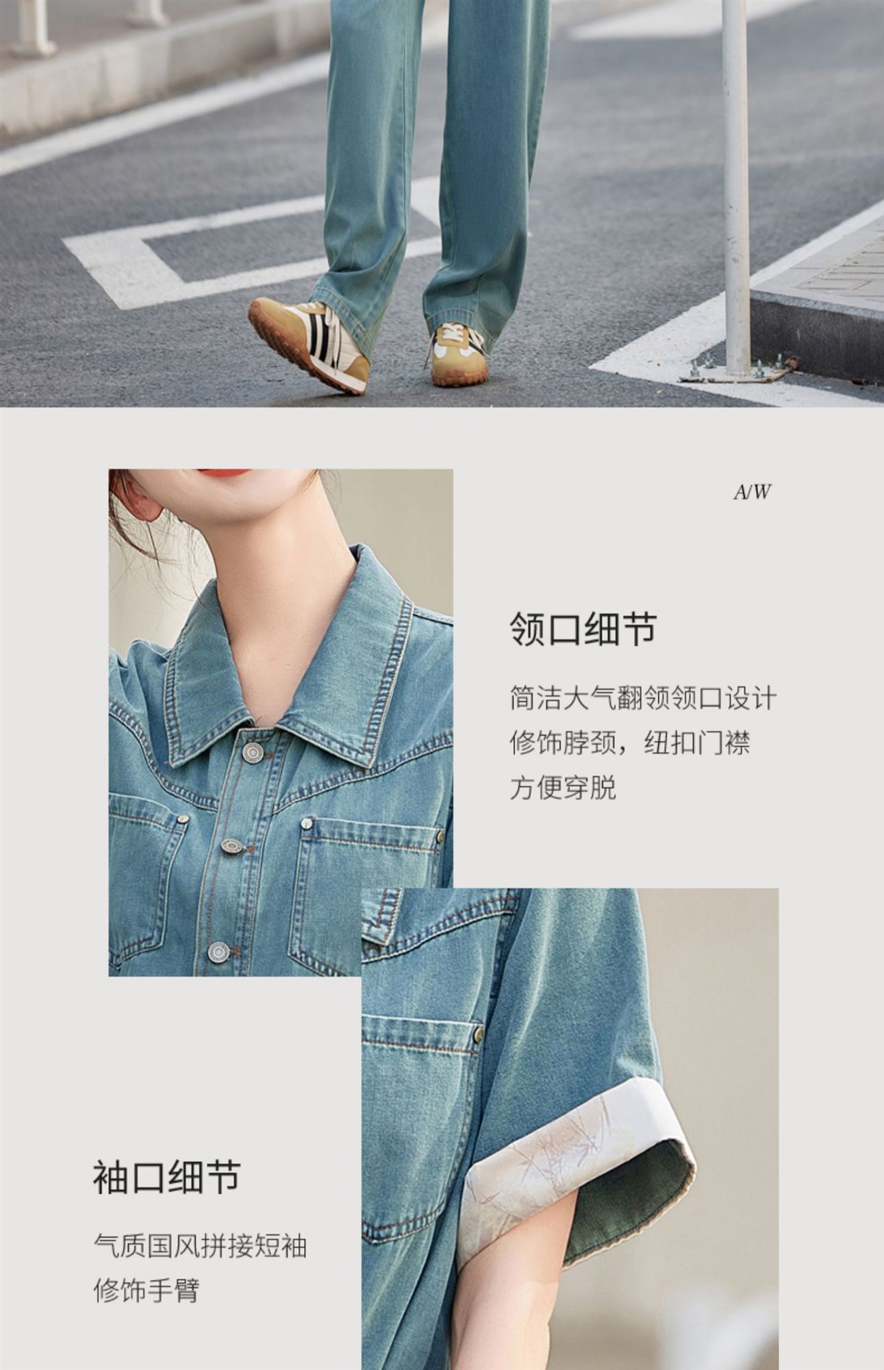LITTLE RAINY國風牛仔連體褲女夏季高級感寬松減齡休閒濶腿連體衣