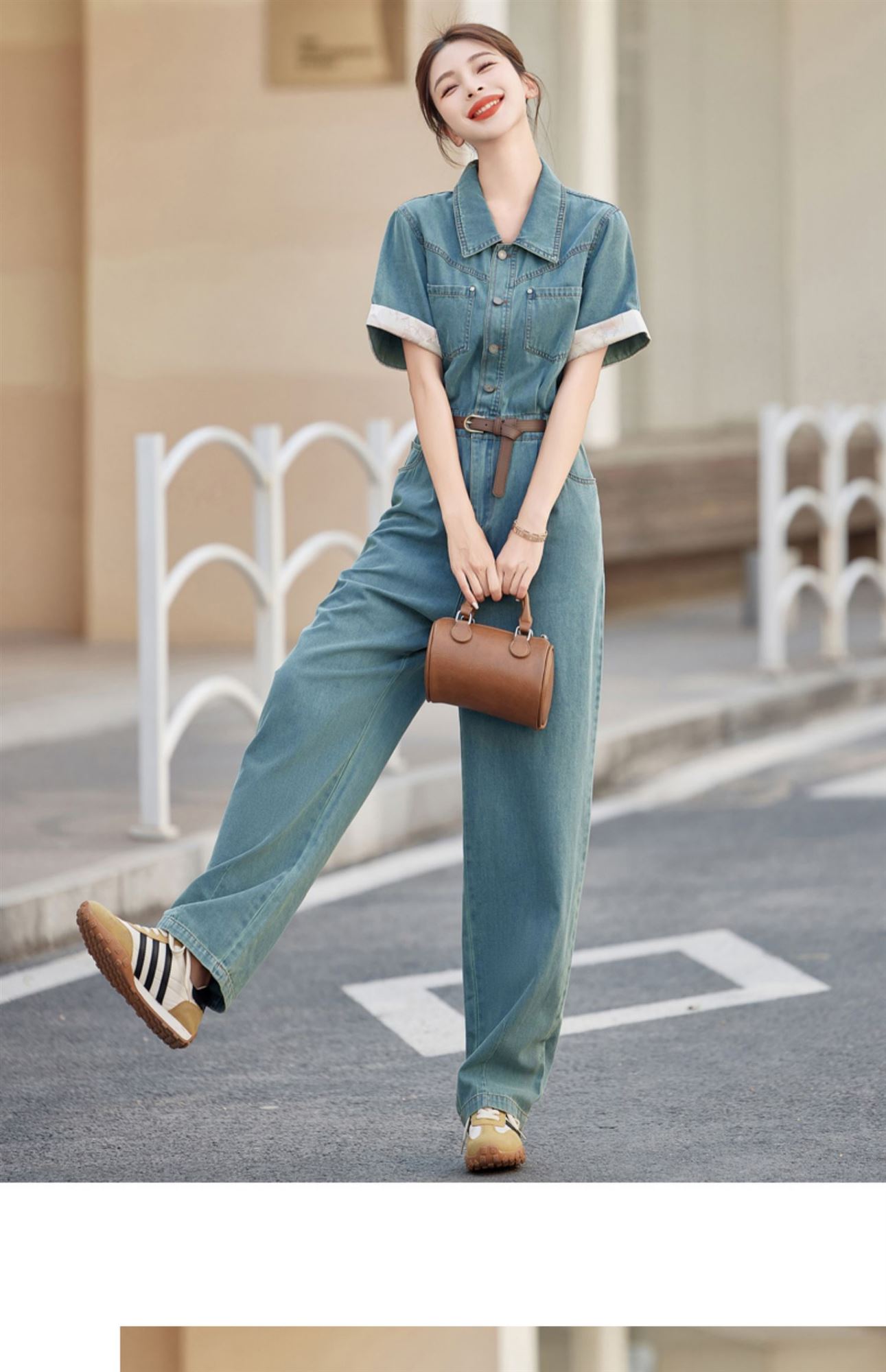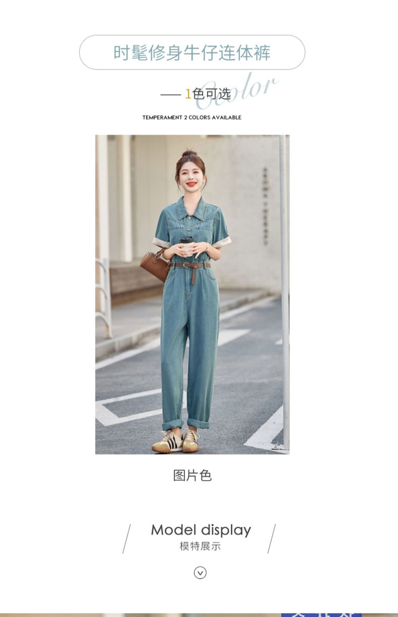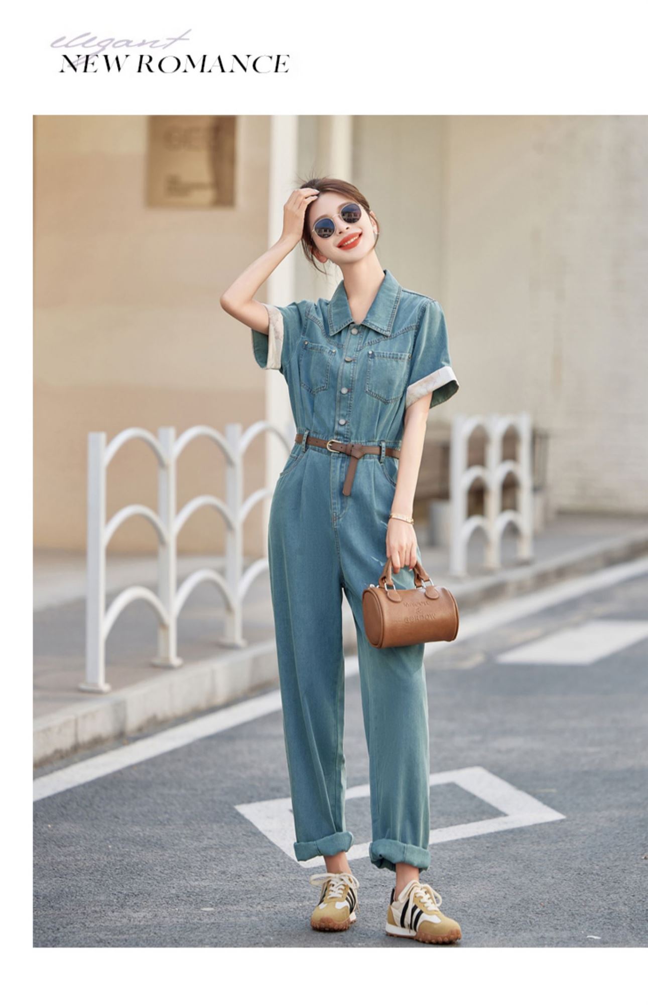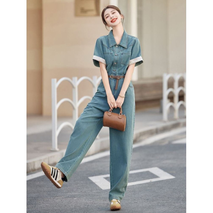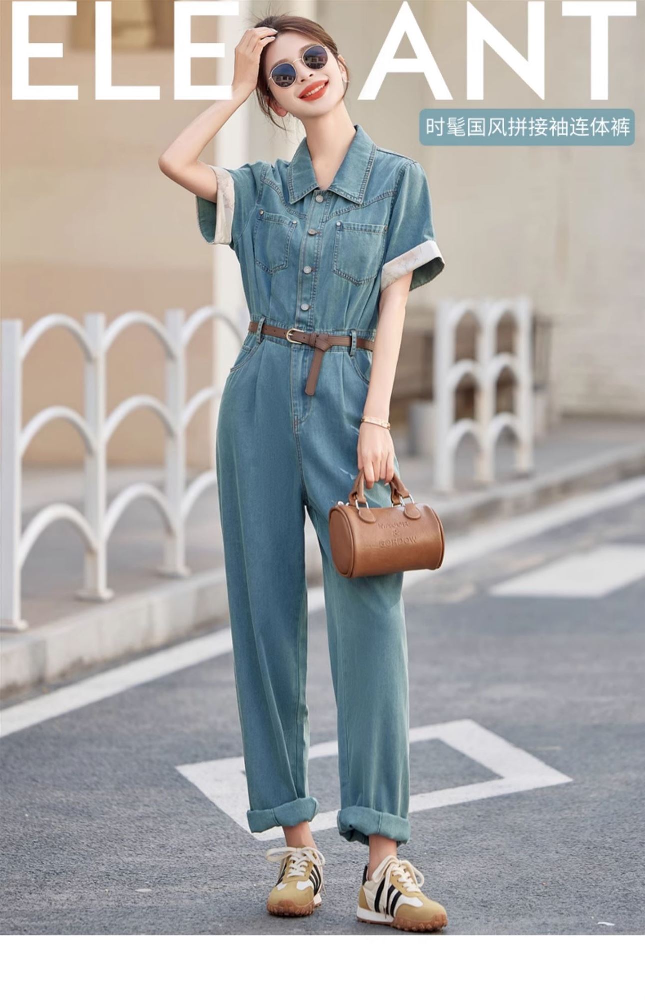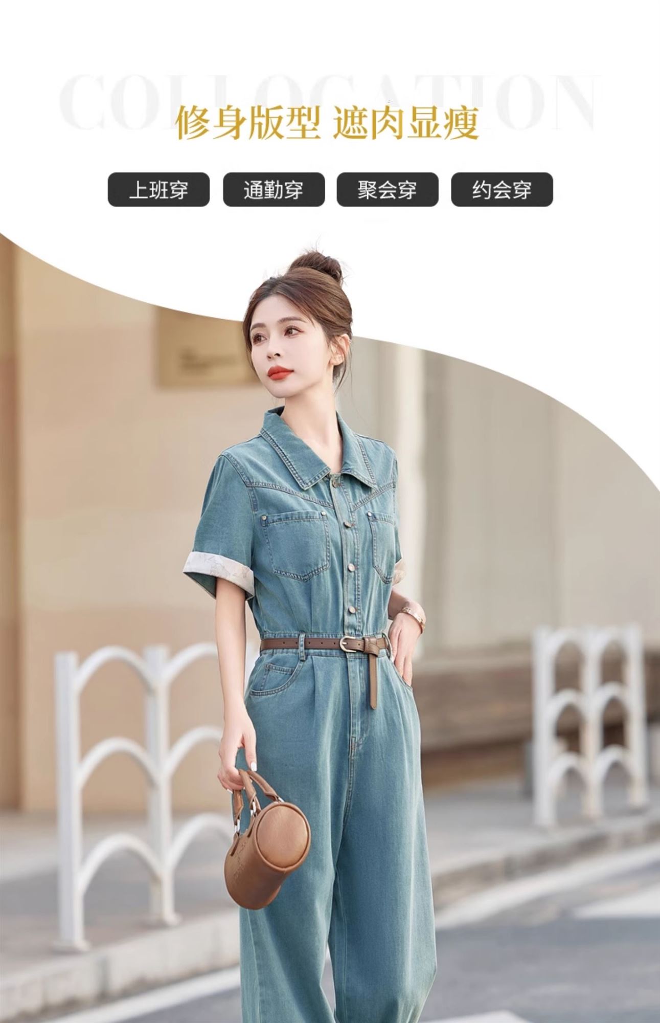 LITTLE RAINY國風牛仔連體褲女夏季高級感寬松減齡休閒濶腿連體衣