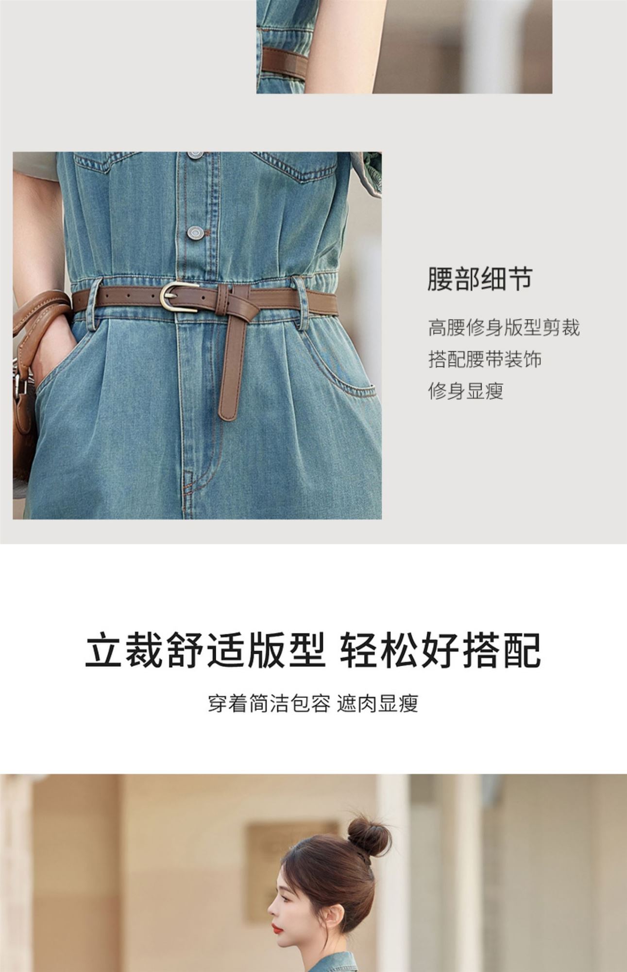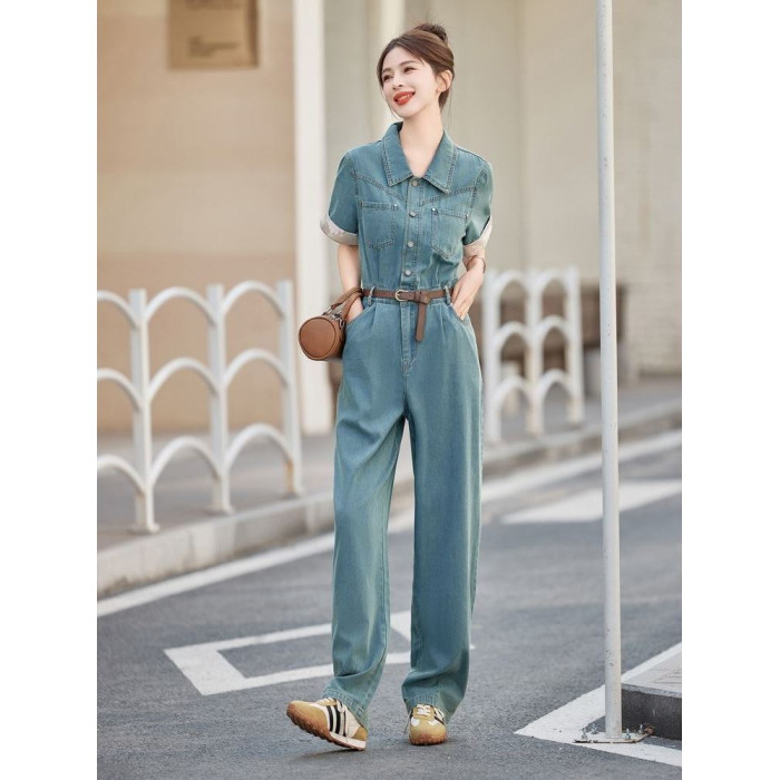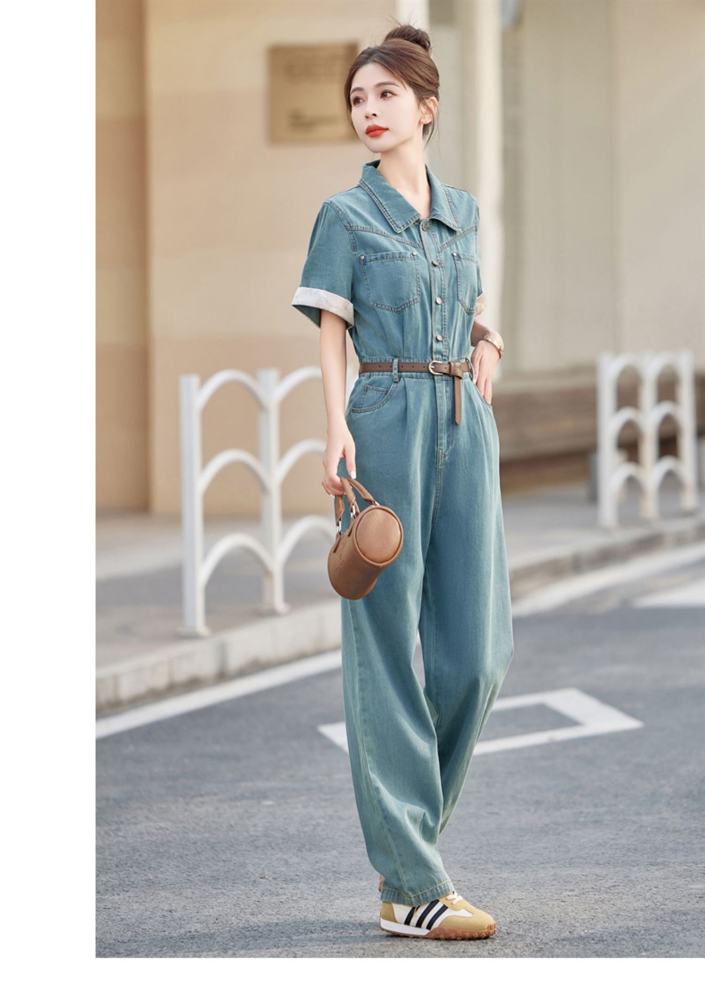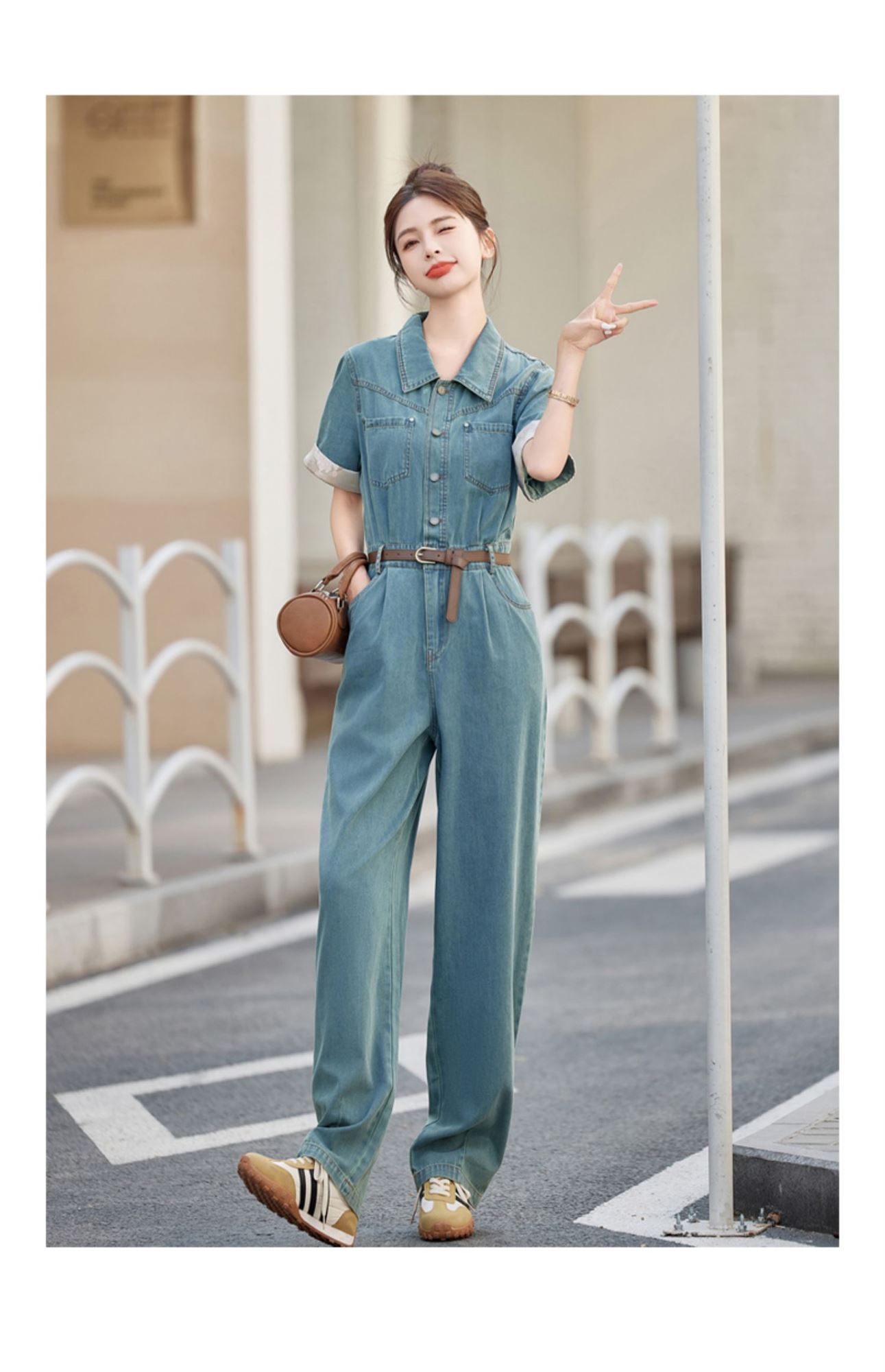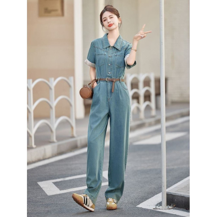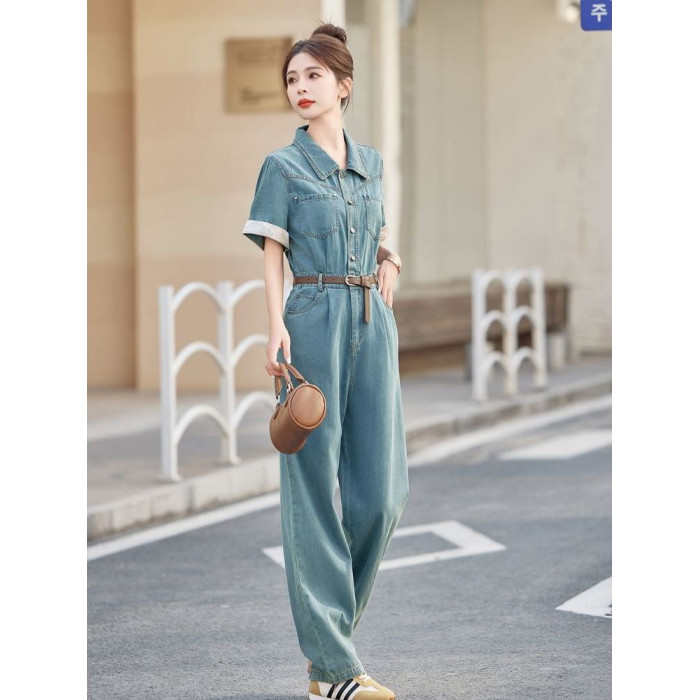 LITTLE RAINY國風牛仔連體褲女夏季高級感寬松減齡休閒濶腿連體衣