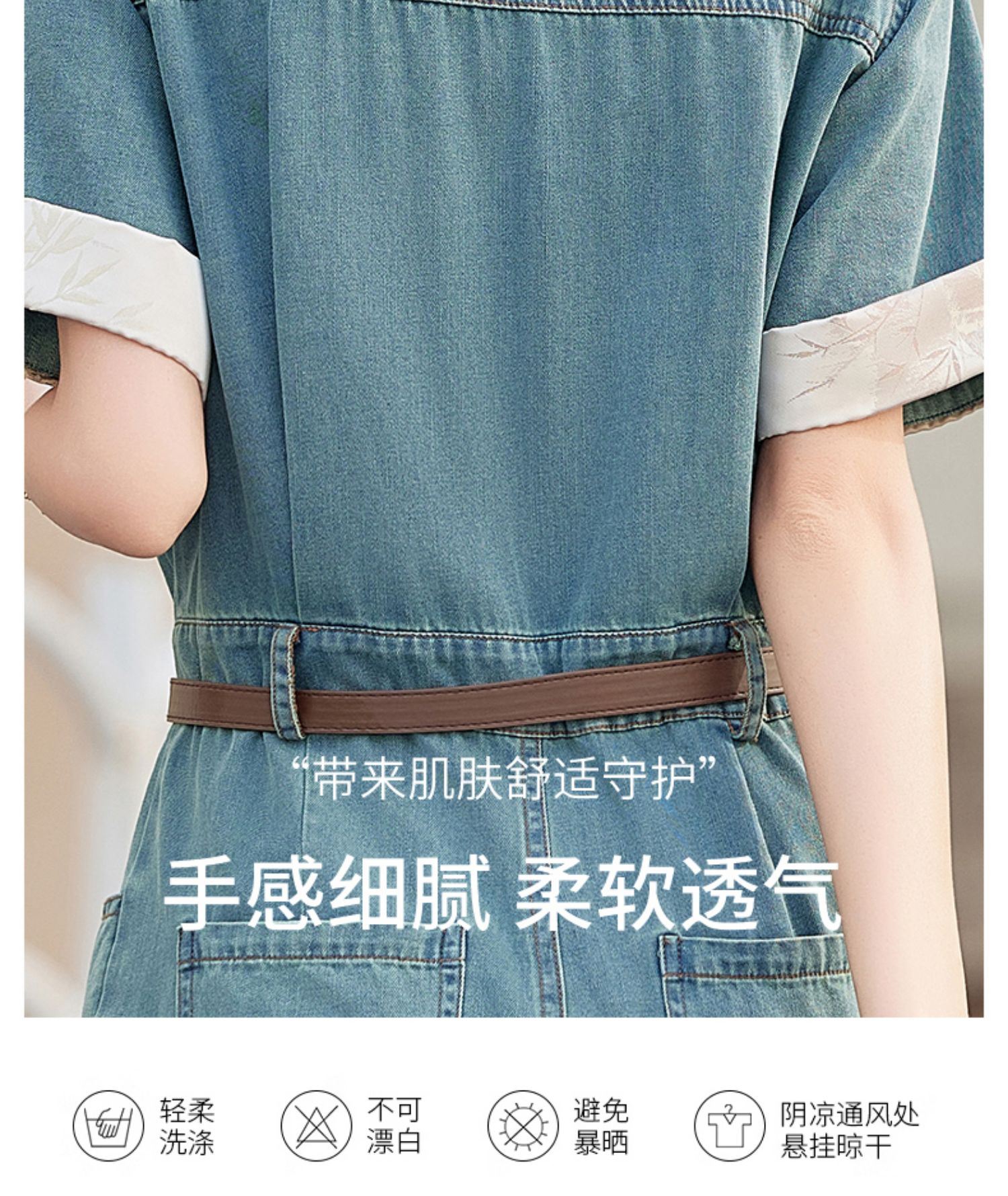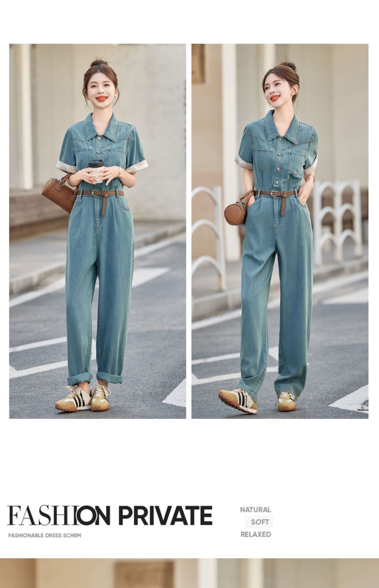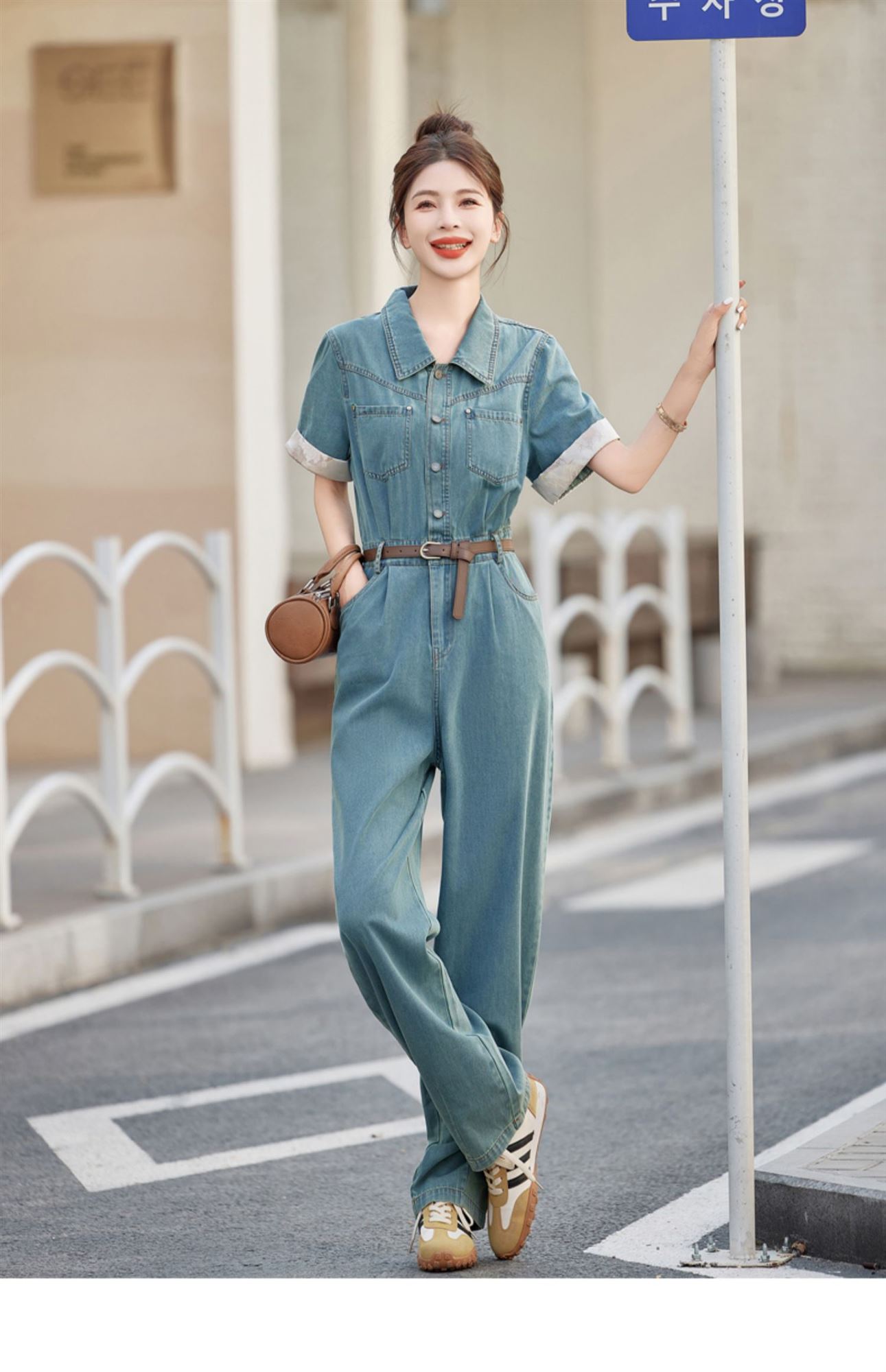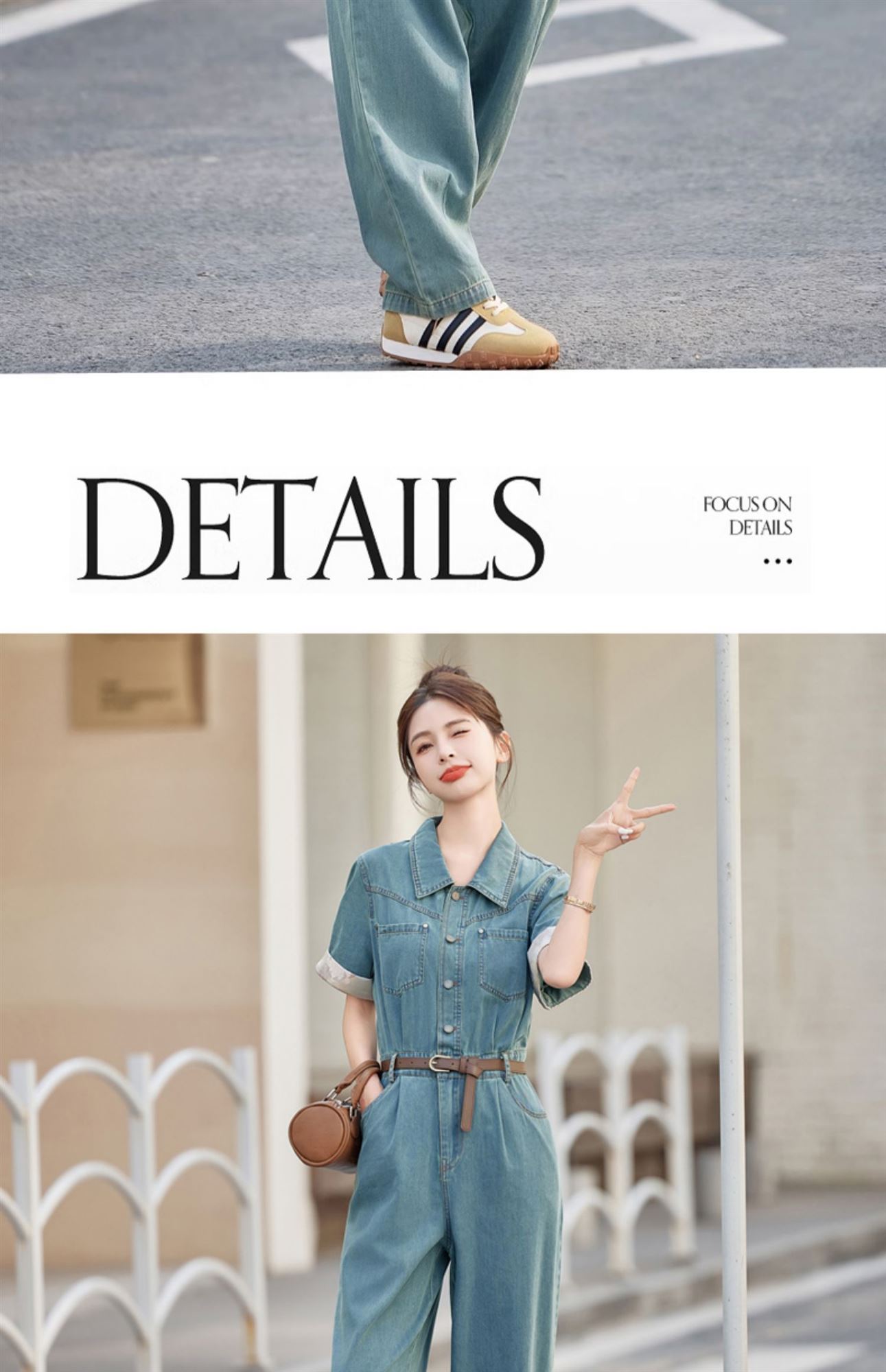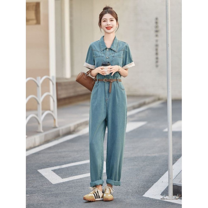 LITTLE RAINY國風牛仔連體褲女夏季高級感寬松減齡休閒濶腿連體衣