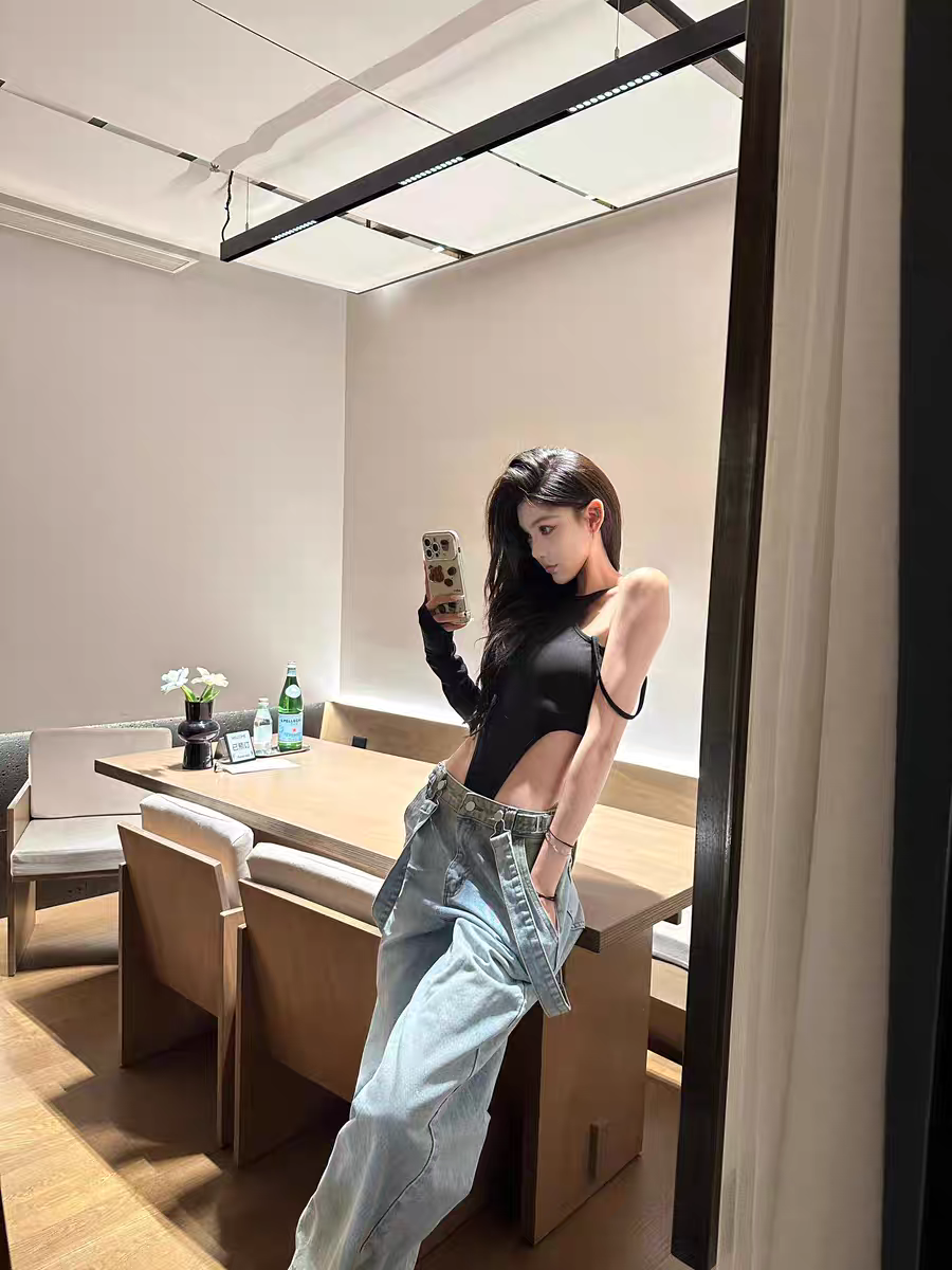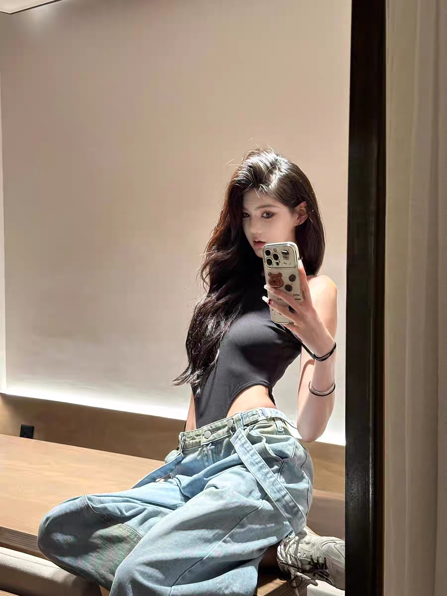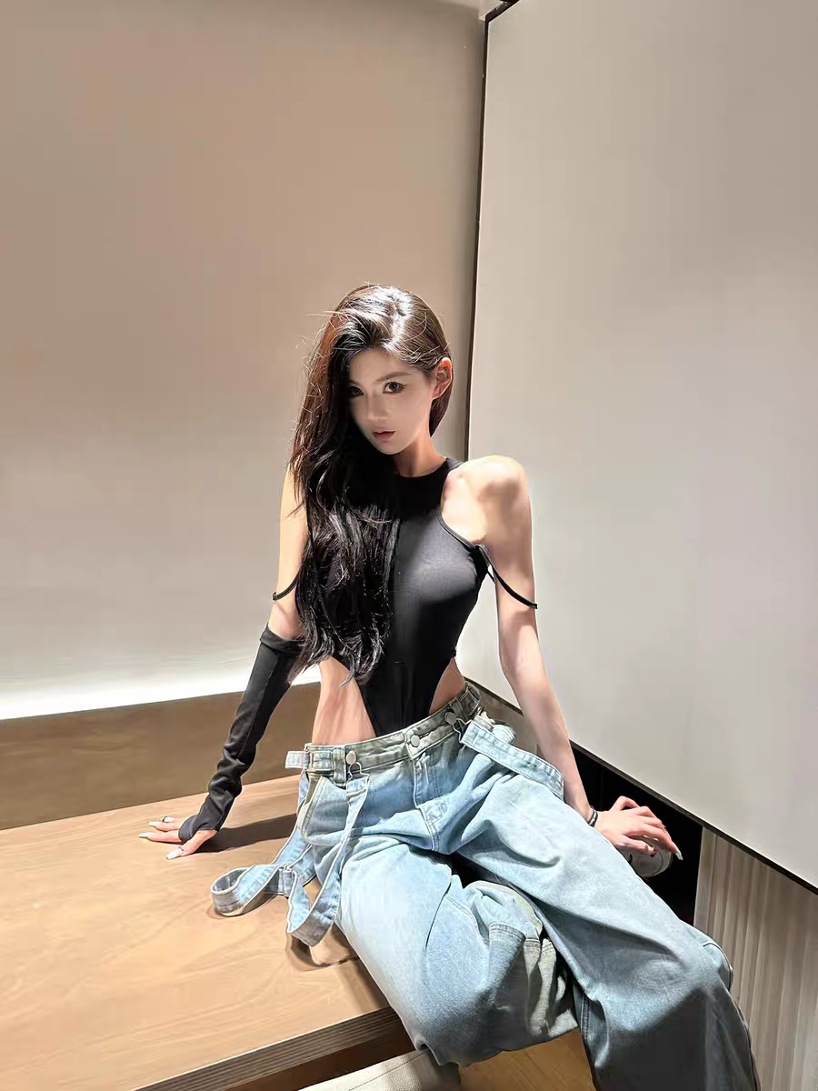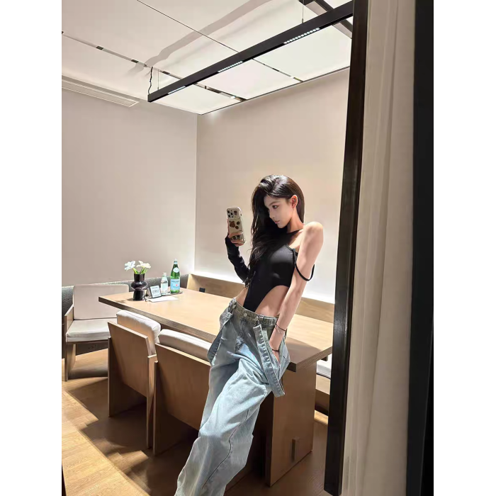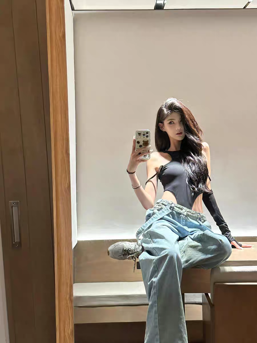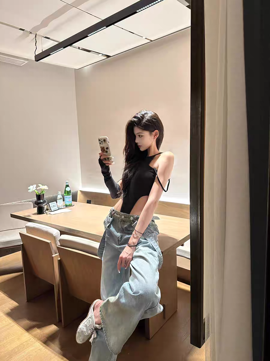 OUTFlT 歐美辣妹風性感掛脖露背連體衣女2025新款修身顯瘦上衣