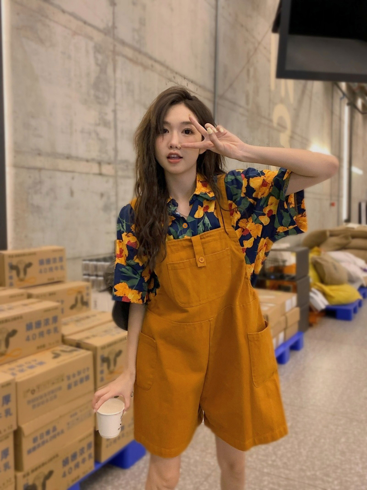 黃色 男短褲女背帶褲