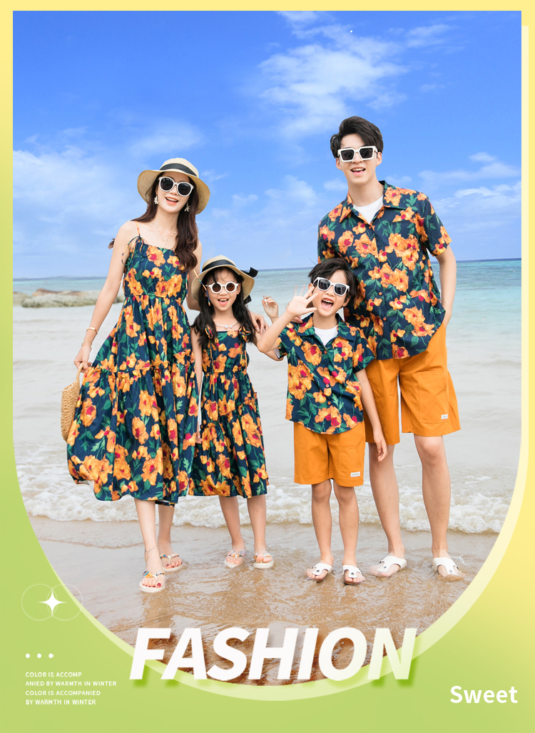花色 母女連衣裙