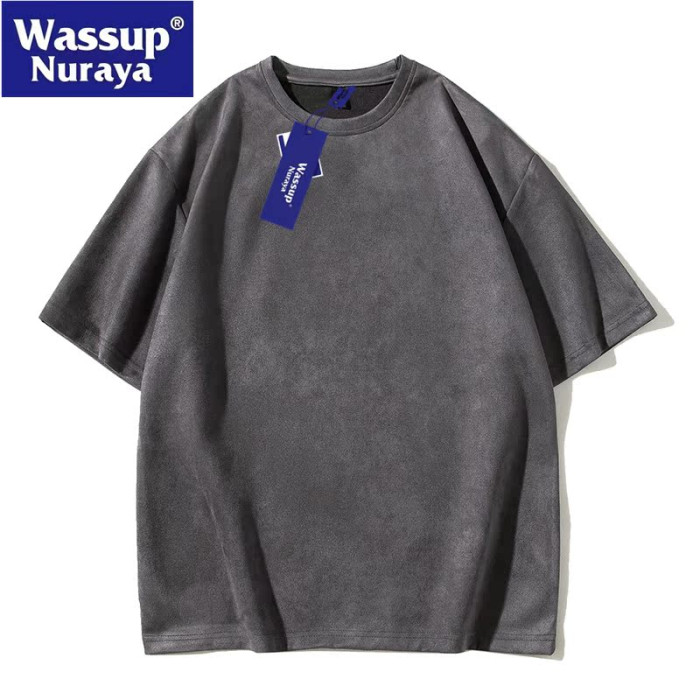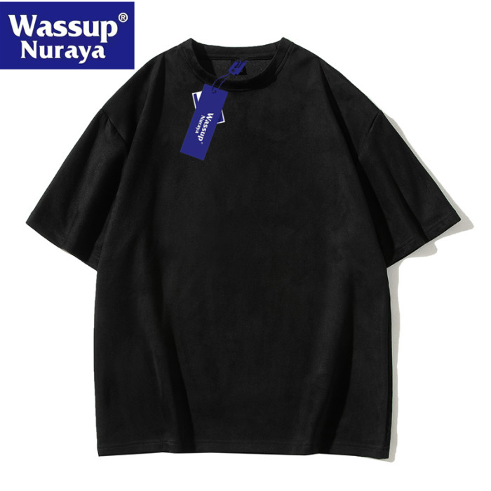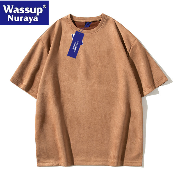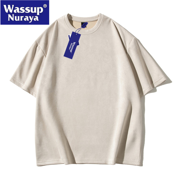 WASSUP Nuraya潮牌夏季新款麂皮絨圓領T恤男士寬松休閒短袖上衣
