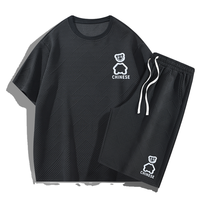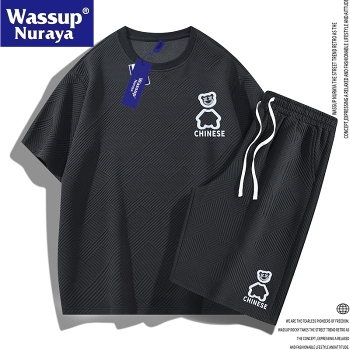 WASSUP Nuraya潮牌華夫格運動套裝男夏季短袖t恤男款短褲一套男生