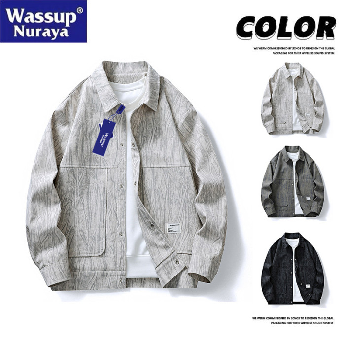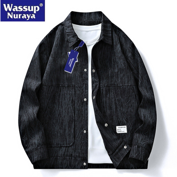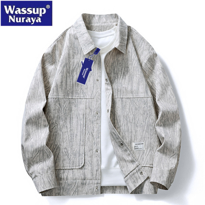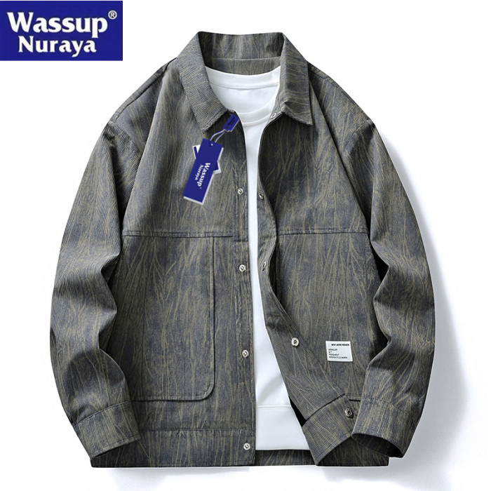 WASSUP Nuraya潮牌春季燈芯絨外套加大休閒寬松男生翻領紥染夾克