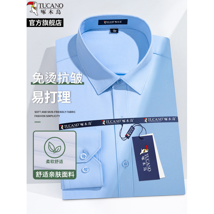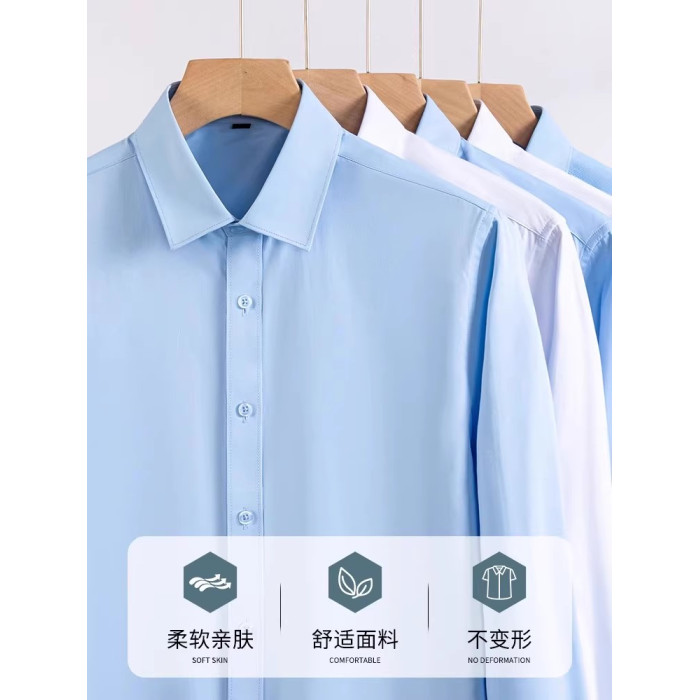 白色平紋 長袖+淺藍斜紋 長袖 【長袖款兩件裝】