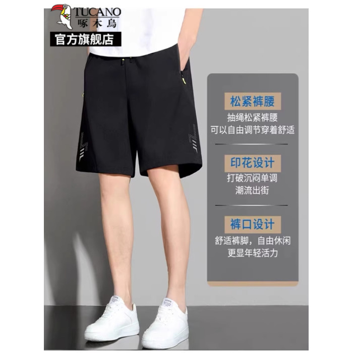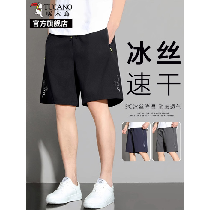 啄木鳥男士冰絲短褲夏季薄款寬松速乾運動褲外穿休閒大碼五分褲K