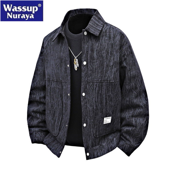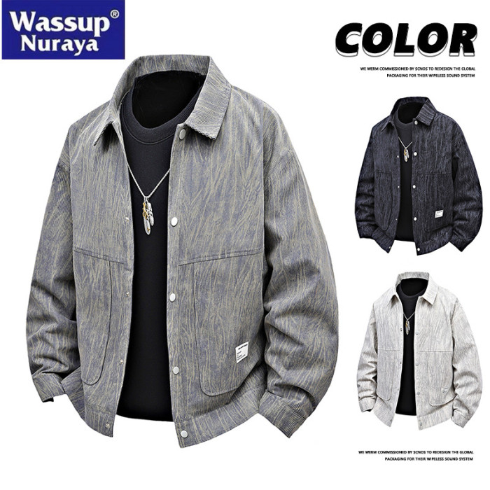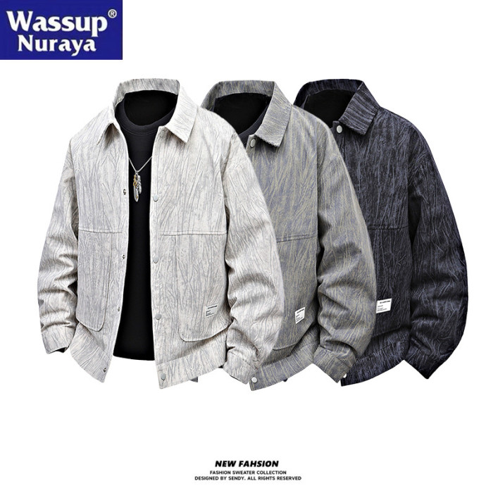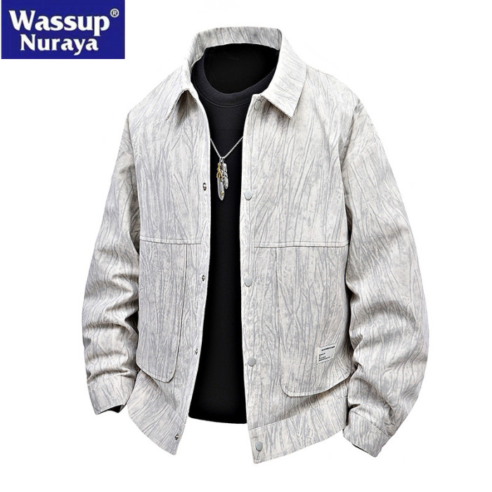WASSUP Nuraya潮牌春秋外套加大休閒寬松男生翻領紥染青少年夾克