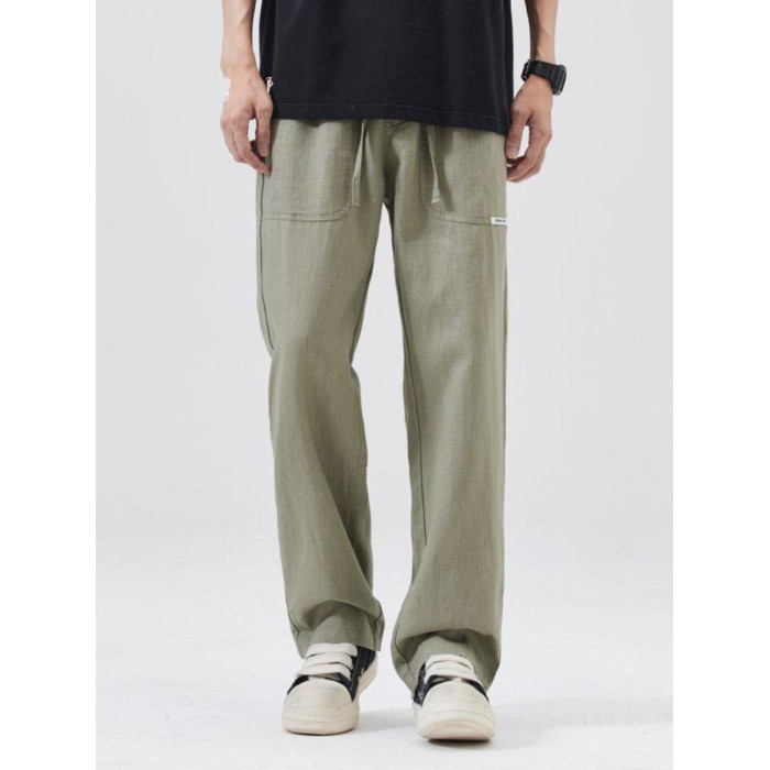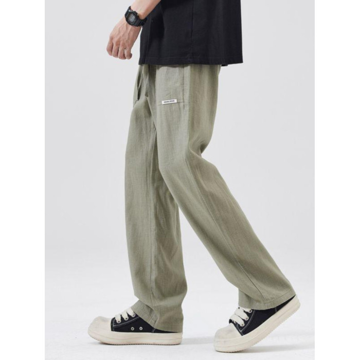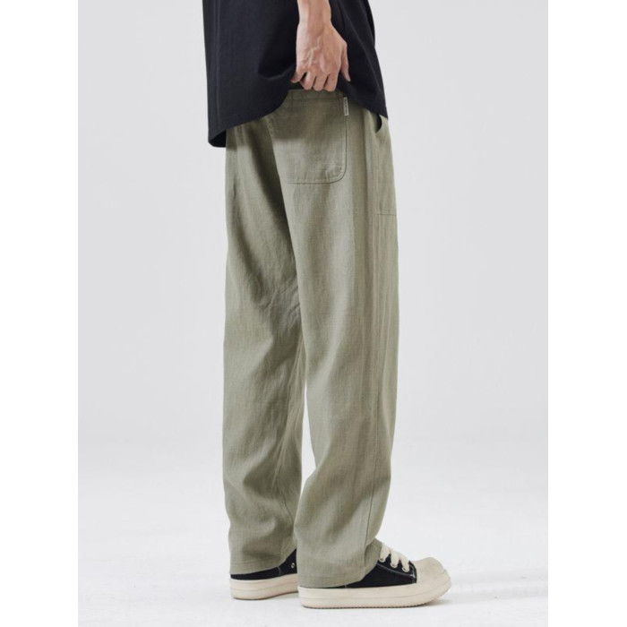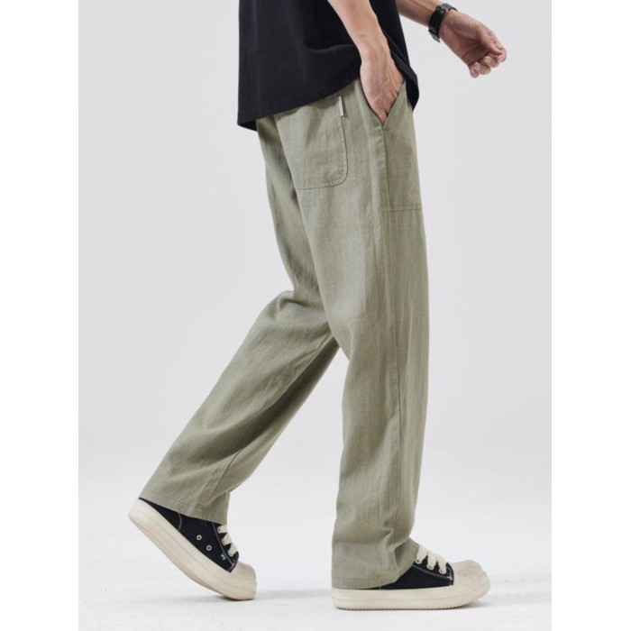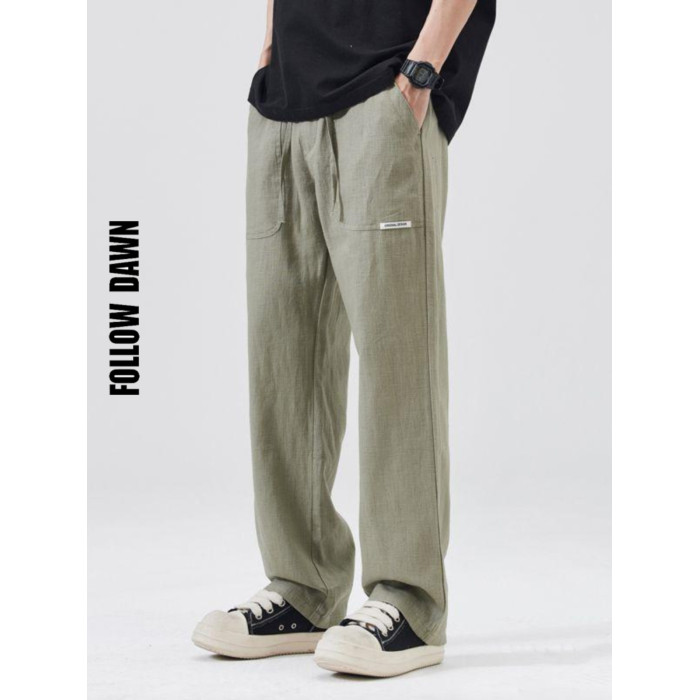 棉麻薄款休閒褲男2025夏季新款直筒長褲簡約寬松舒適濶腿褲褲子