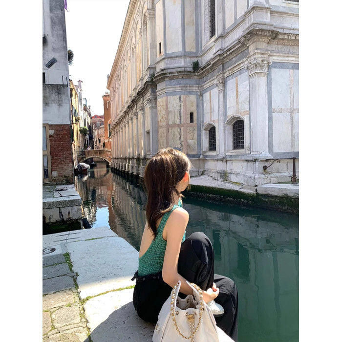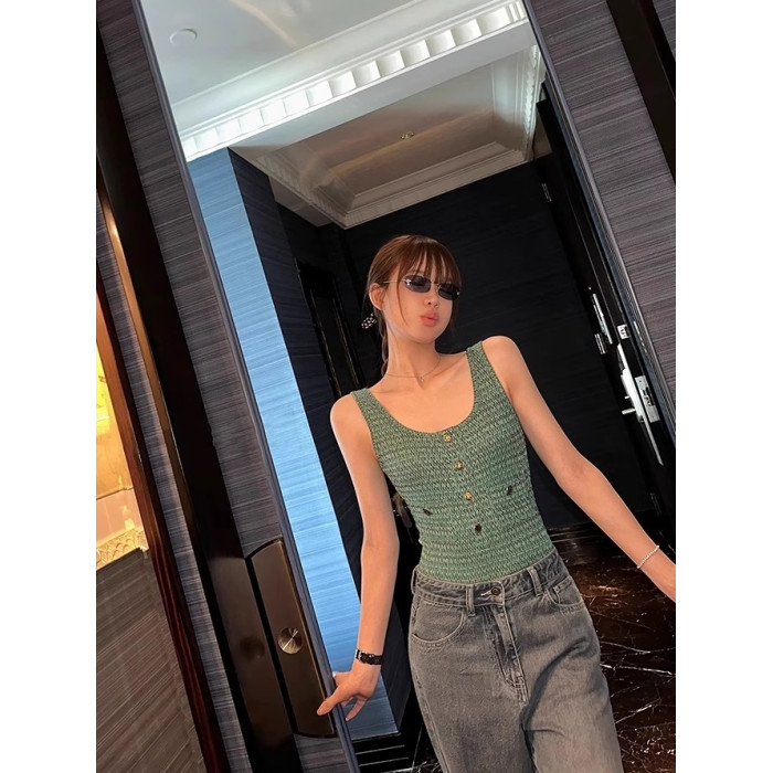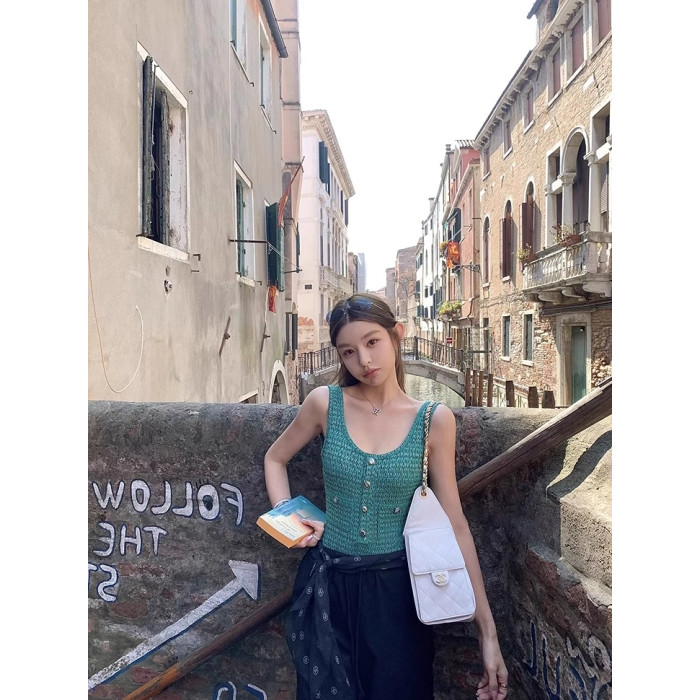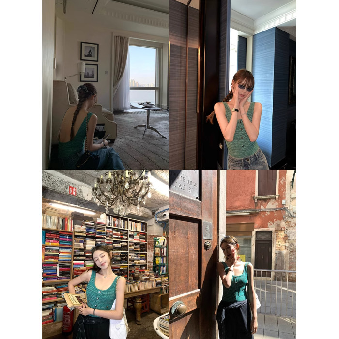 孔雀綠小香連體衣女2025夏季新款顯白性感露背度假無袖背心上衣