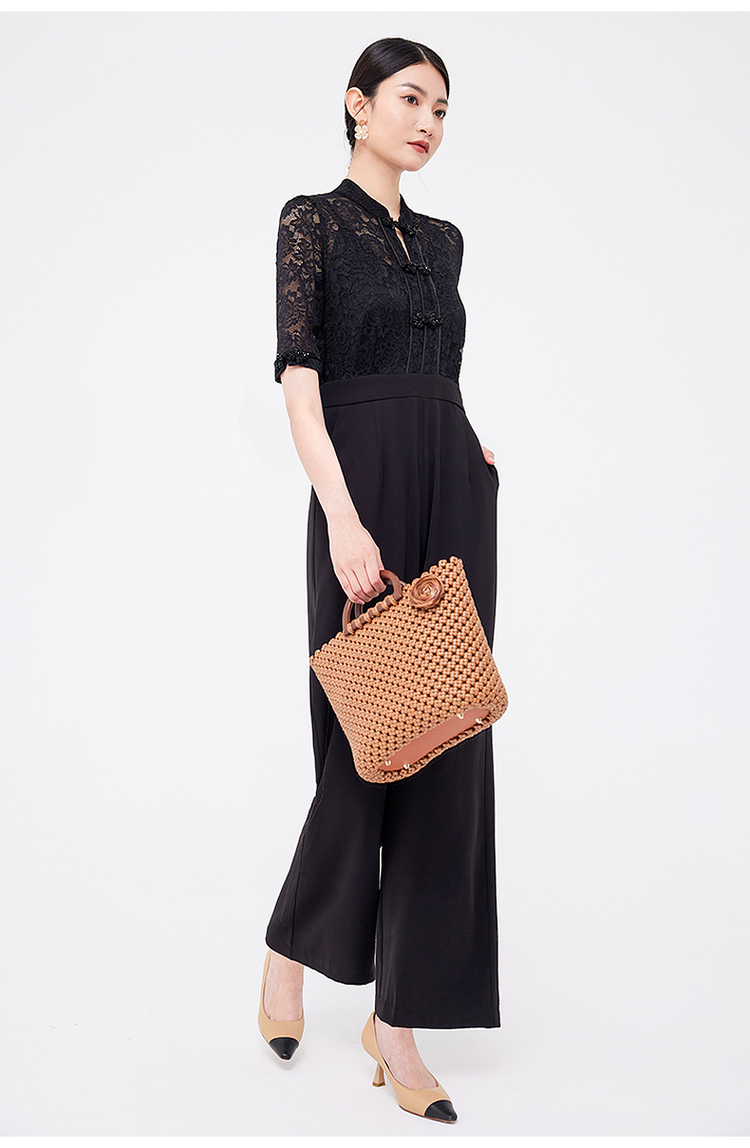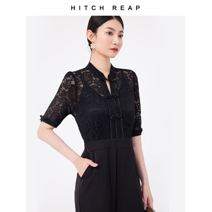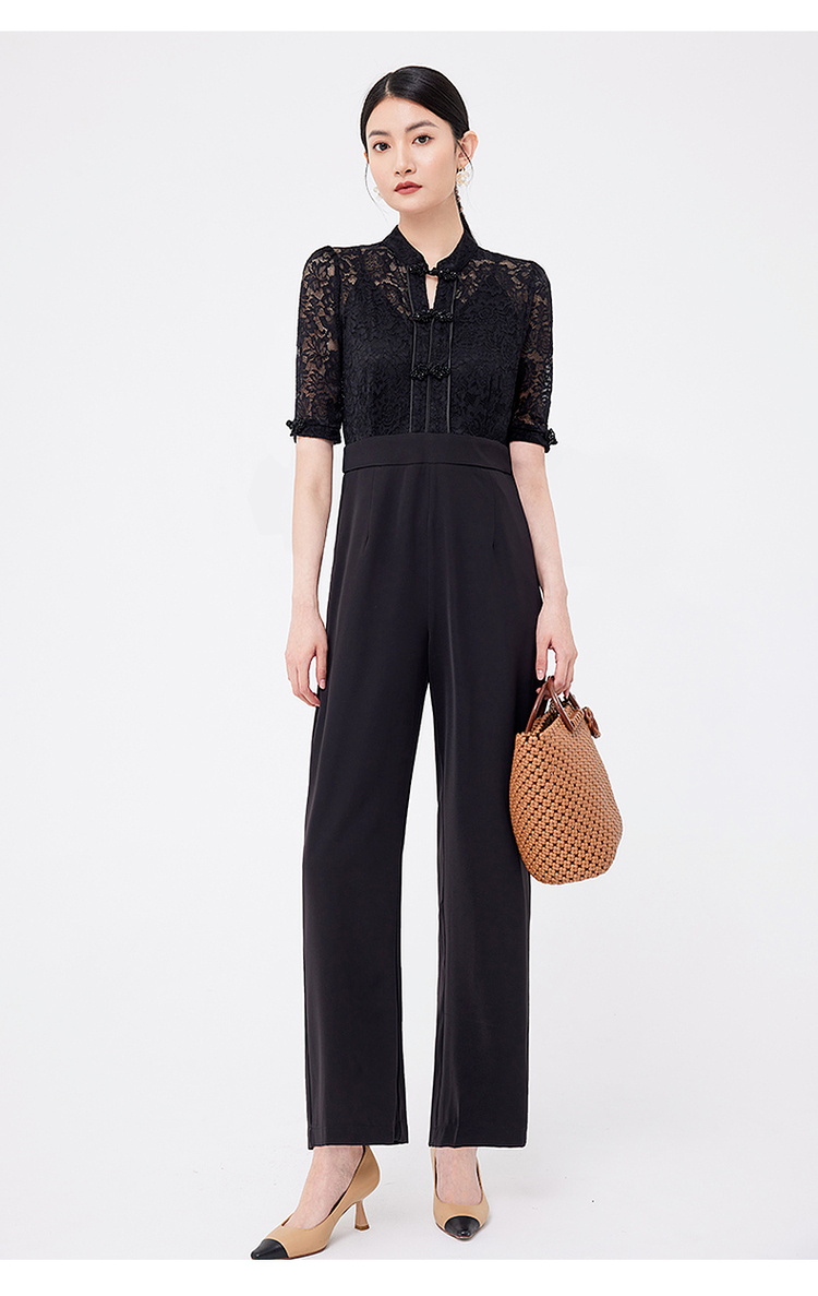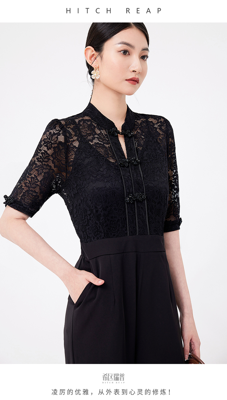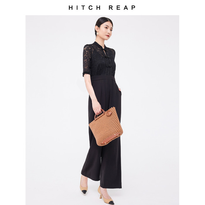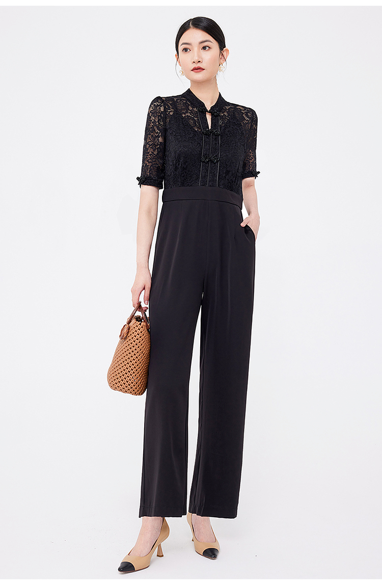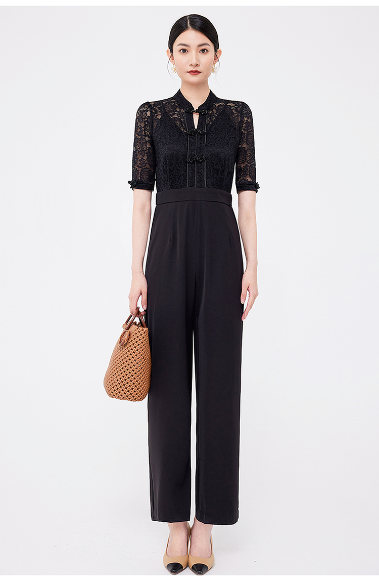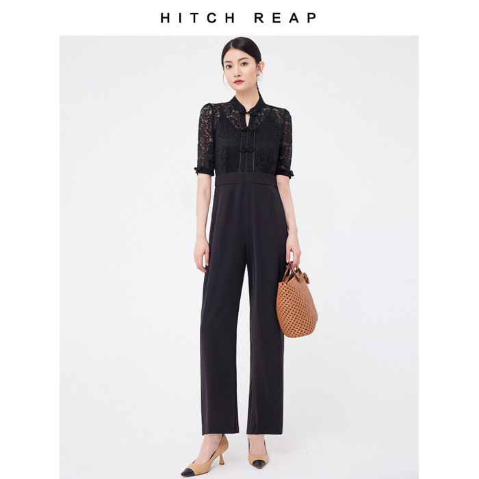 希區瑞普夏裝女新款連體衣高級氣質蕾絲修身顯瘦收腰直筒褲連體褲