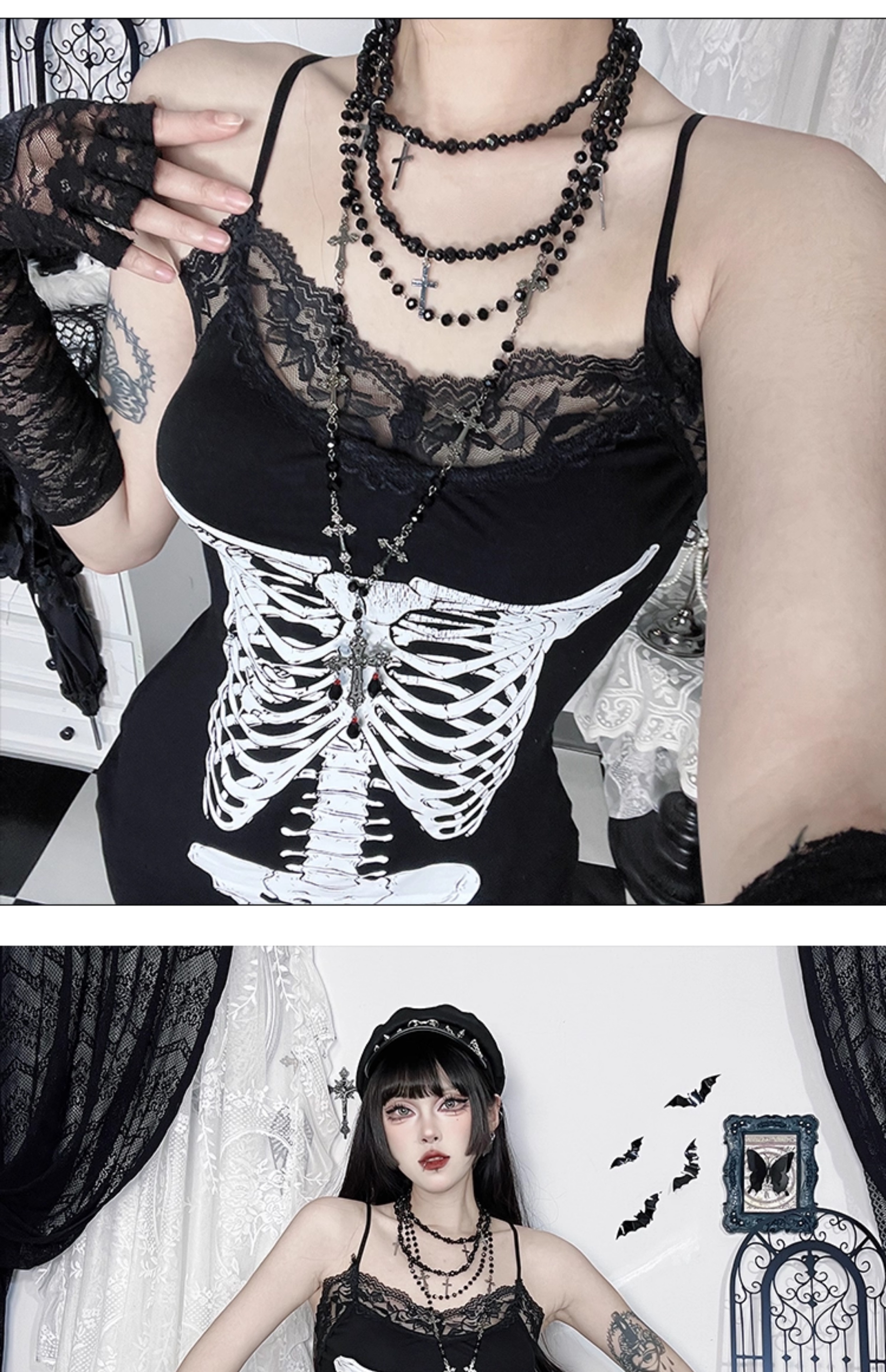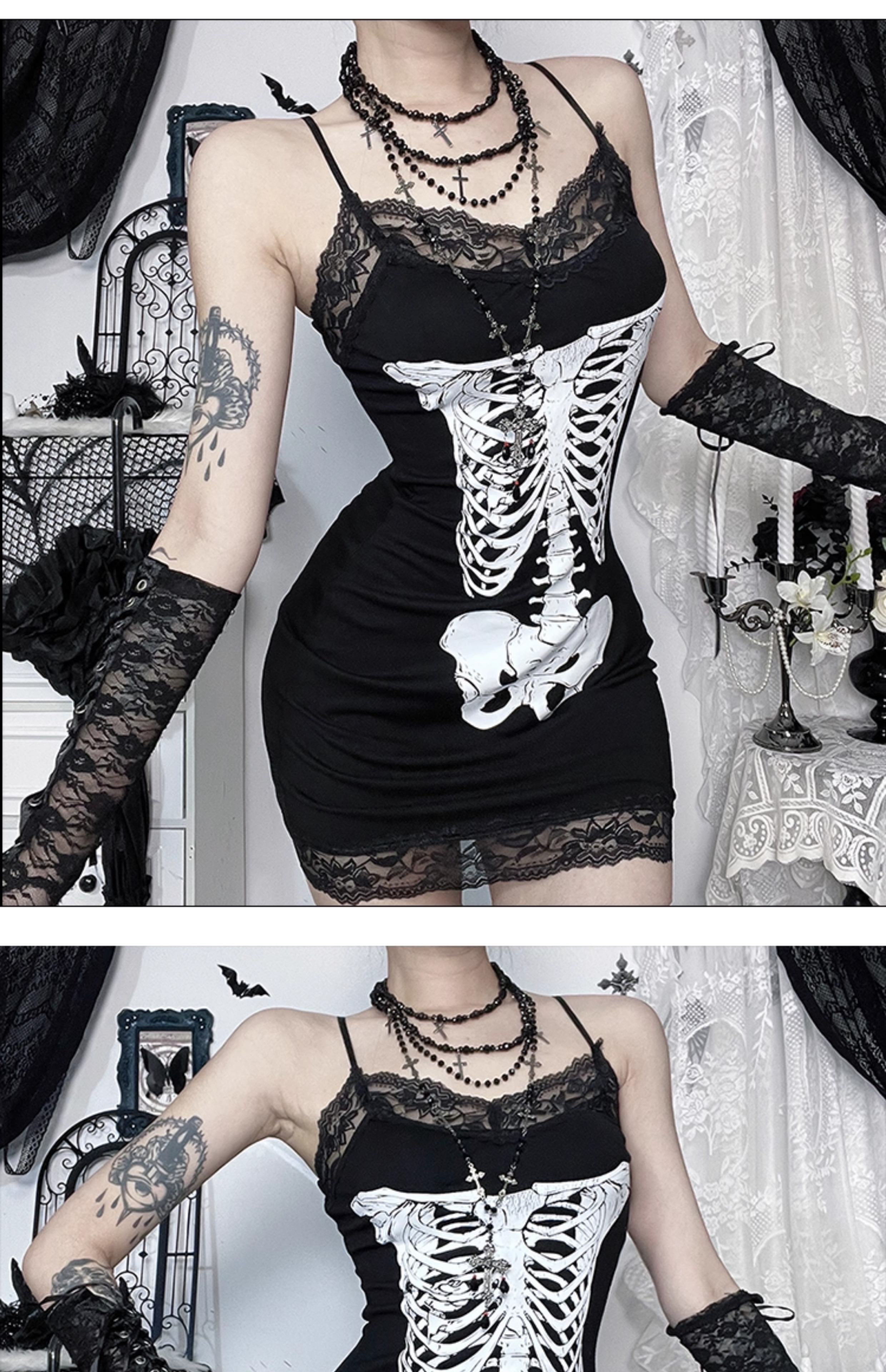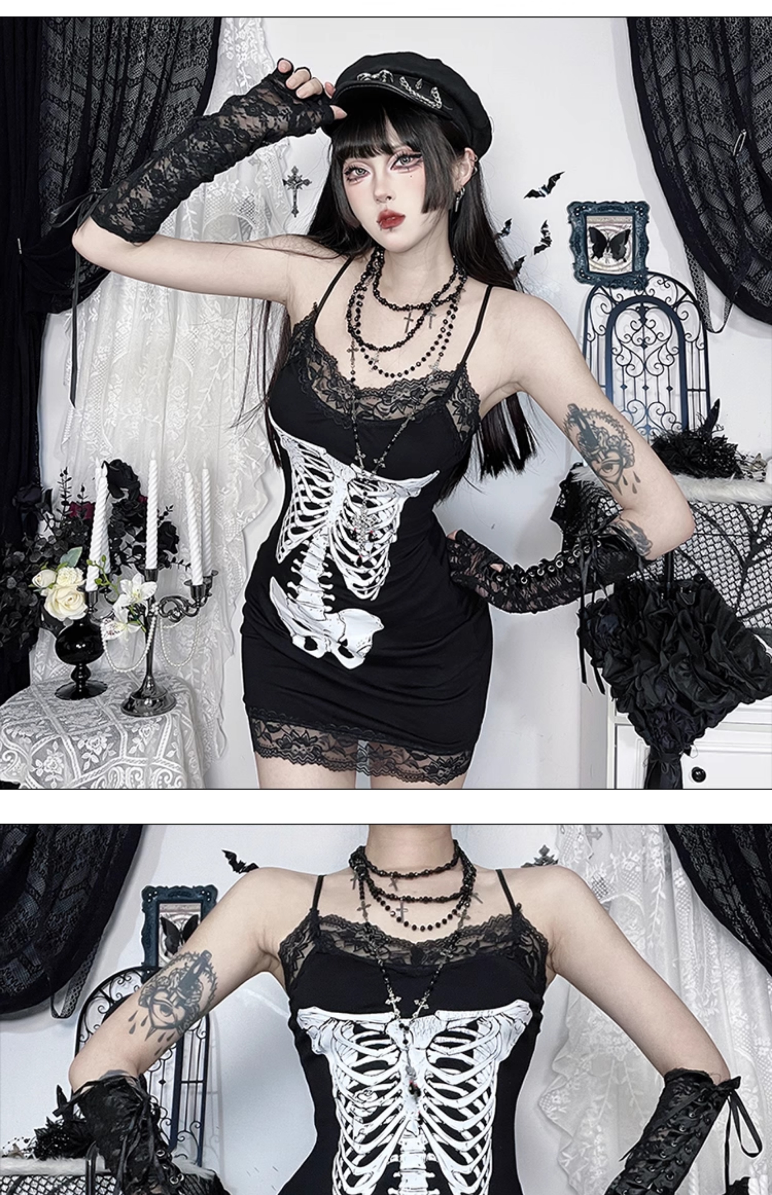 Wannathis哥特風黑色蕾絲連體衣亞文化穿搭辣妹萬聖節穿搭長裙