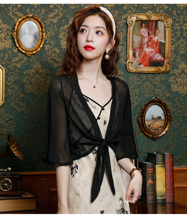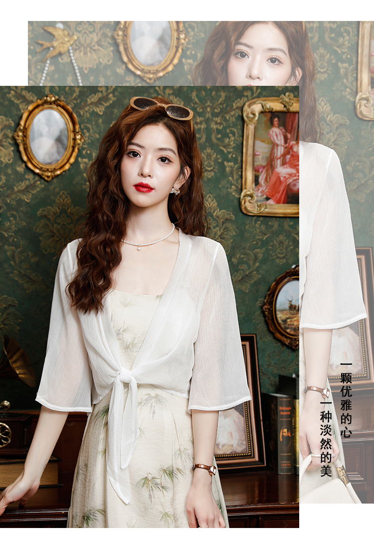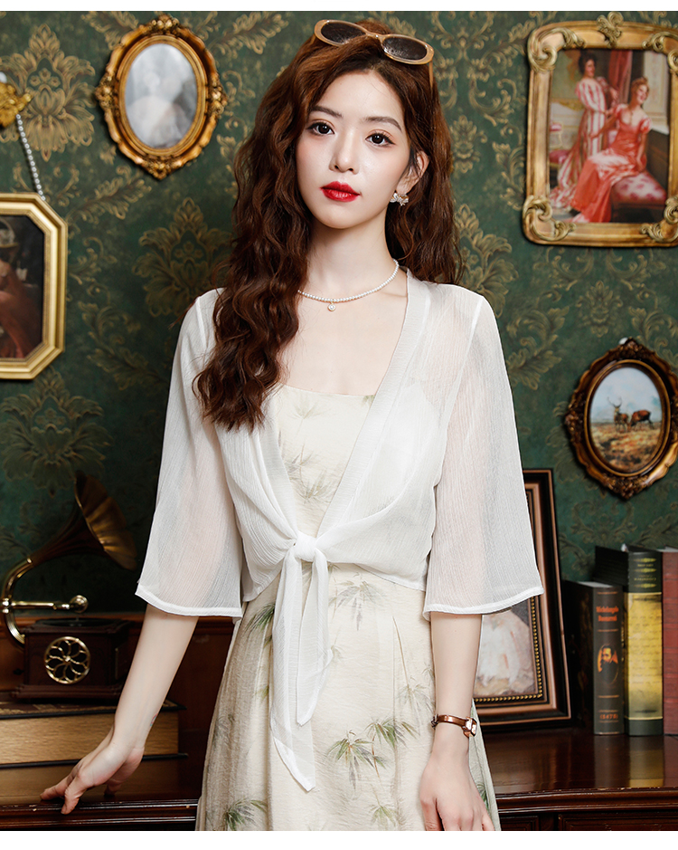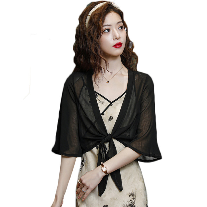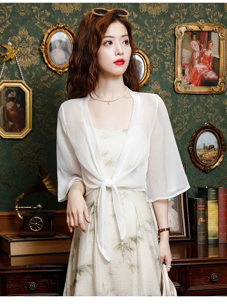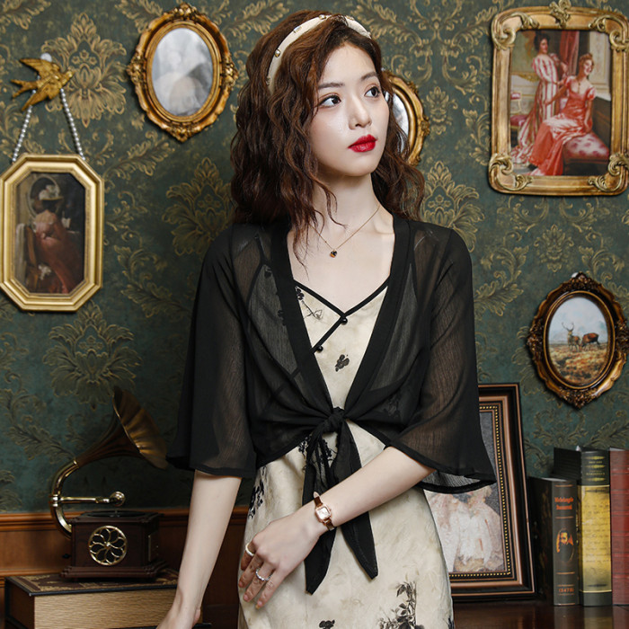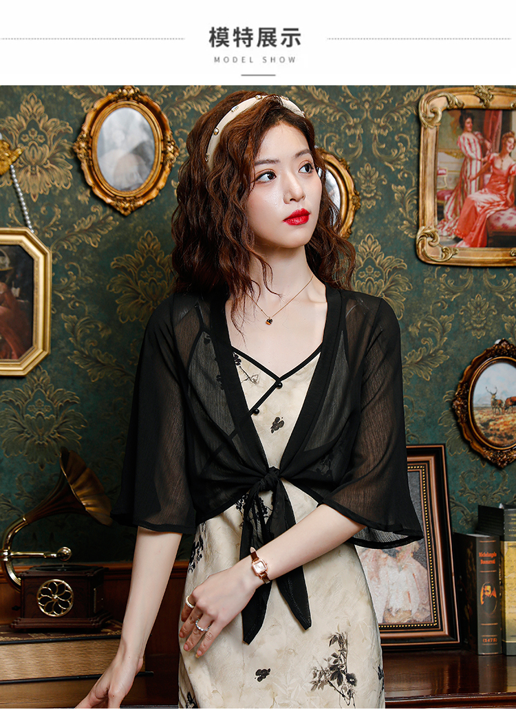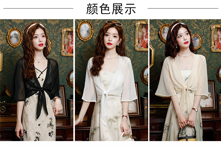 小披肩外搭女夏季雪紡百搭防曬衣配吊帶裙中袖開衫坎肩薄款短外套