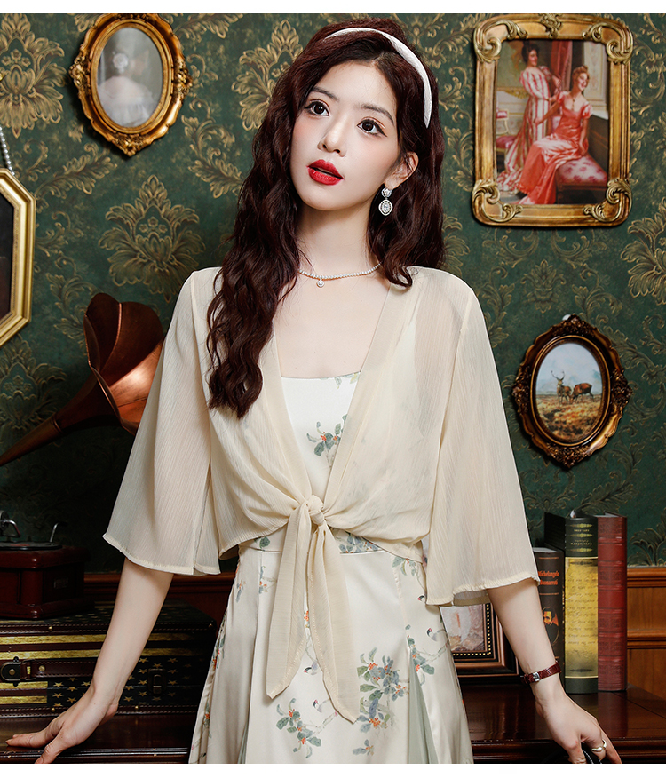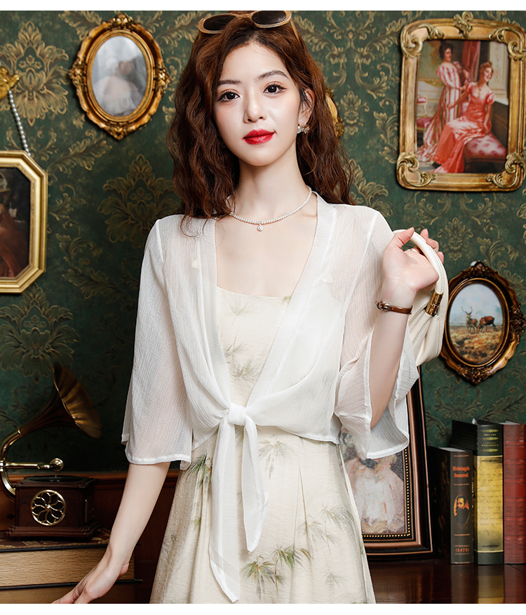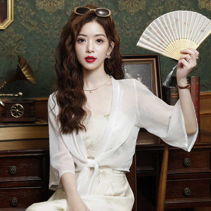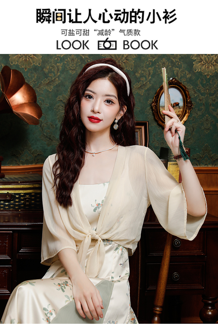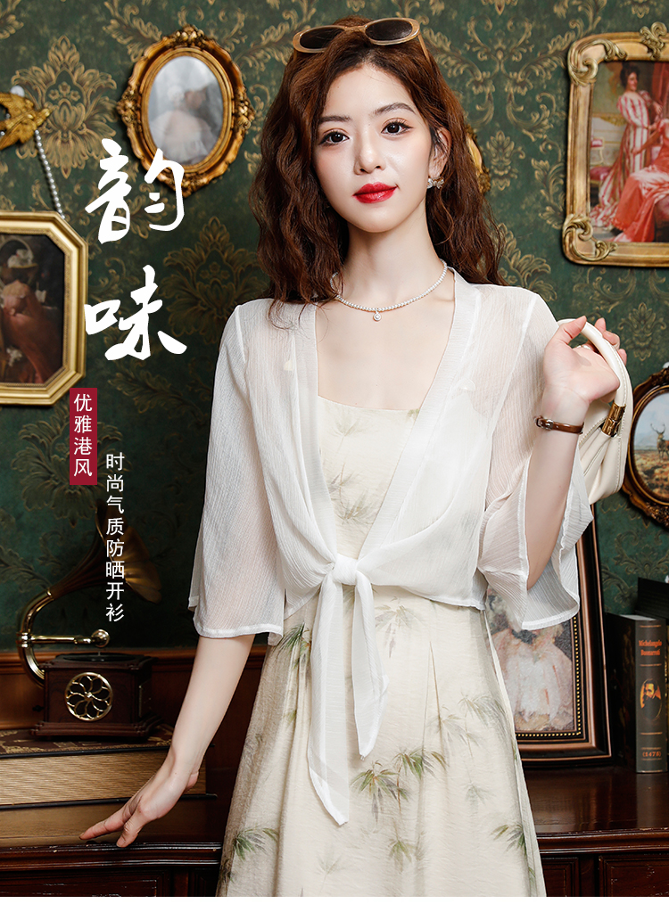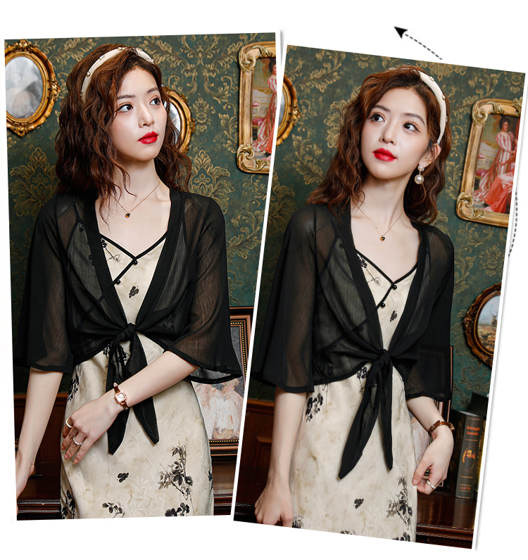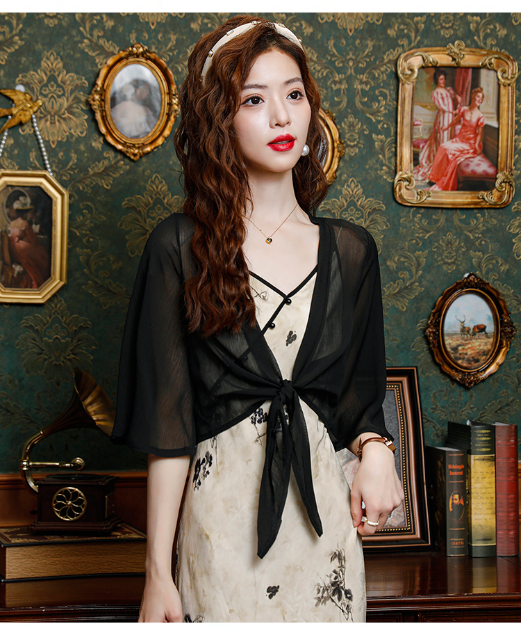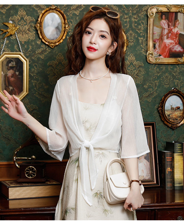小披肩外搭女夏季雪紡百搭防曬衣配吊帶裙中袖開衫坎肩薄款短外套