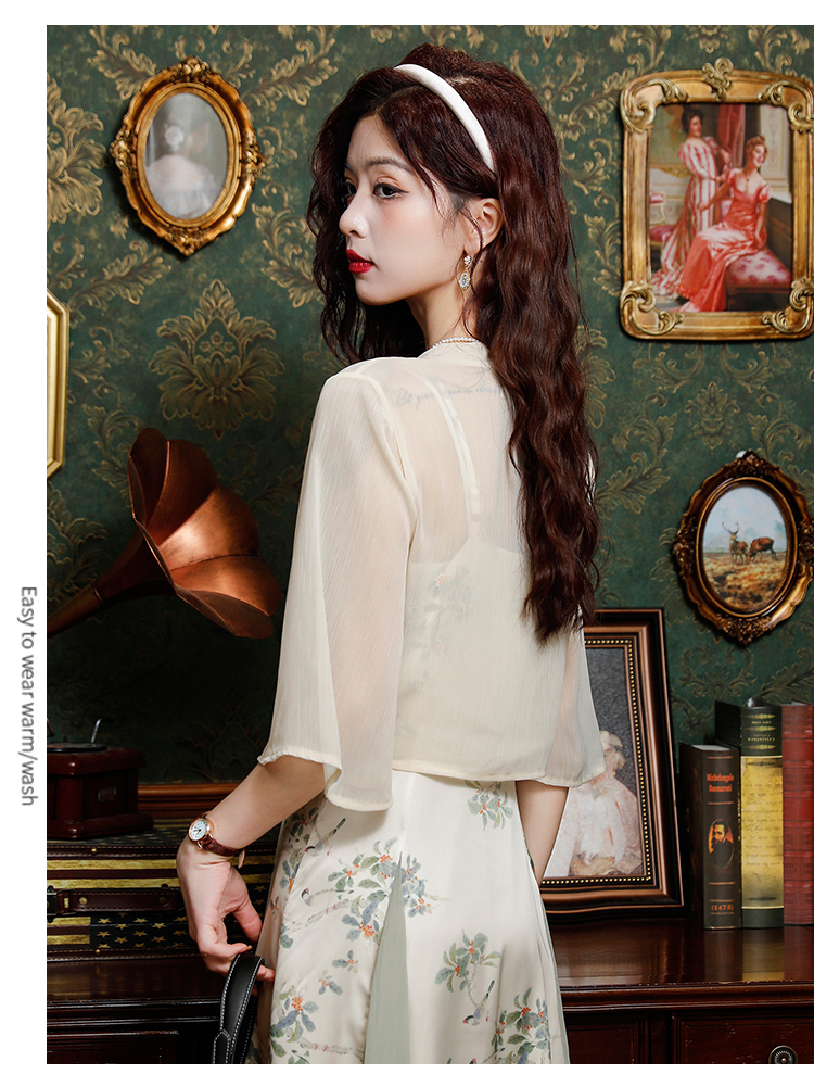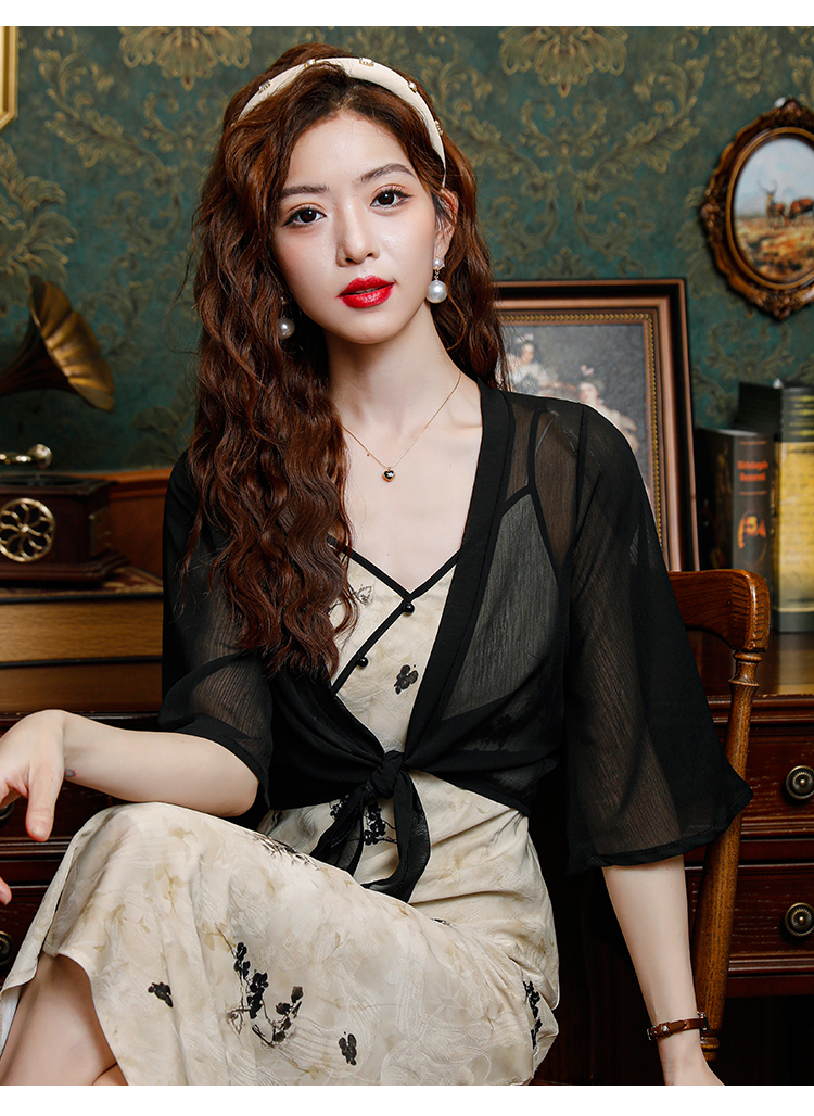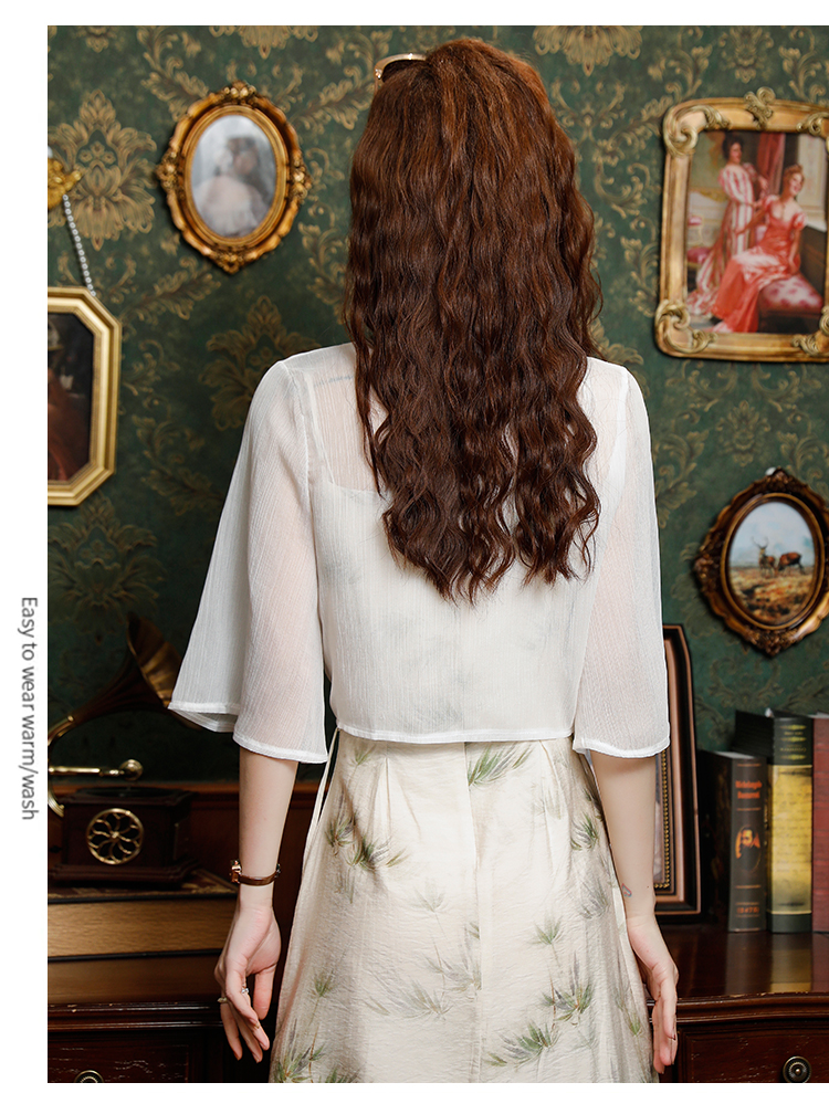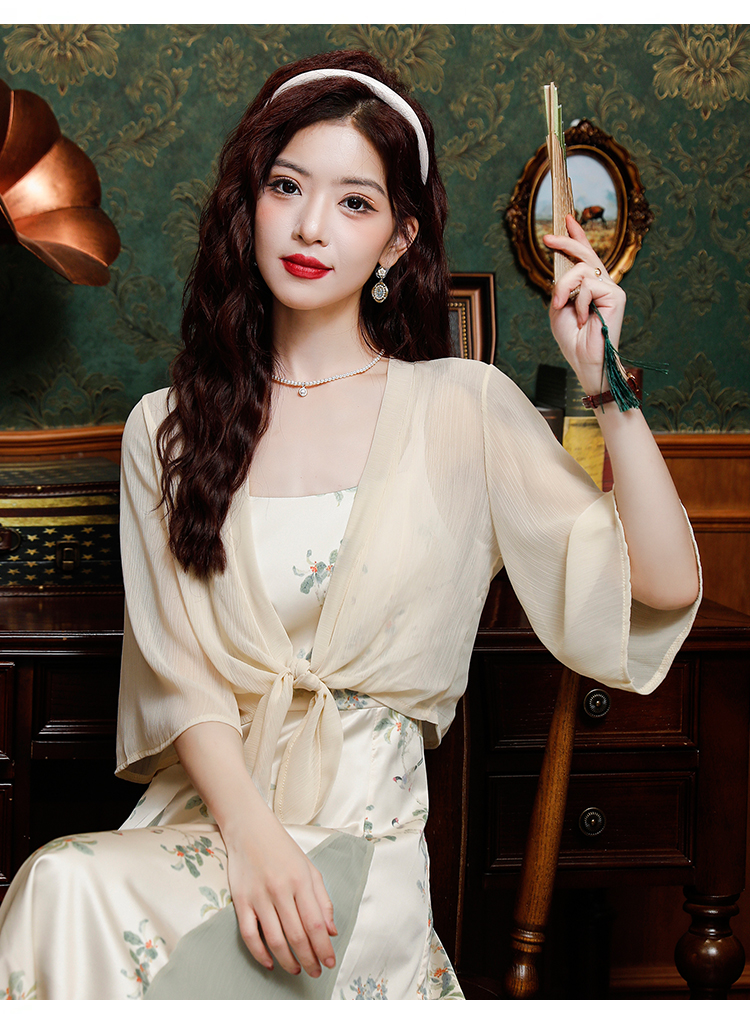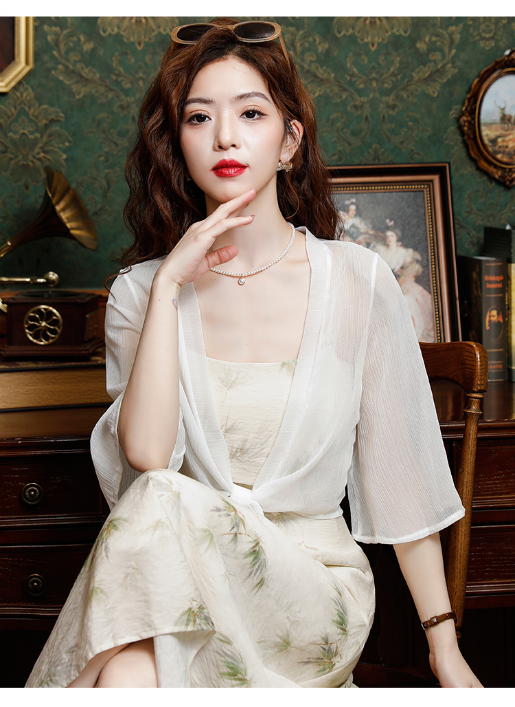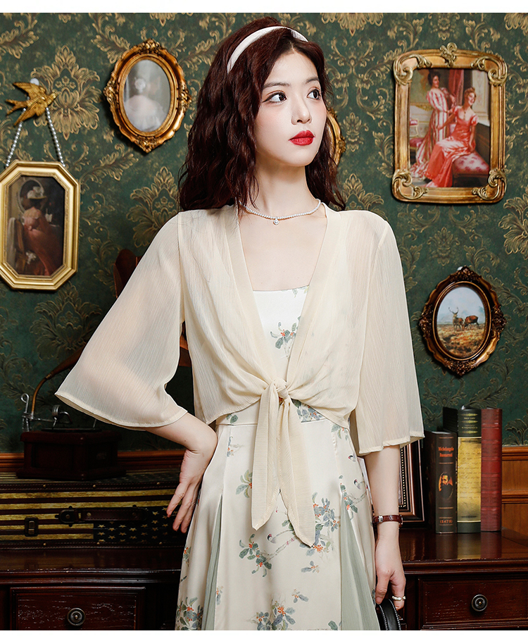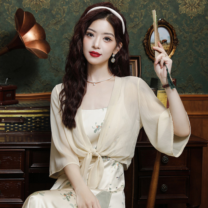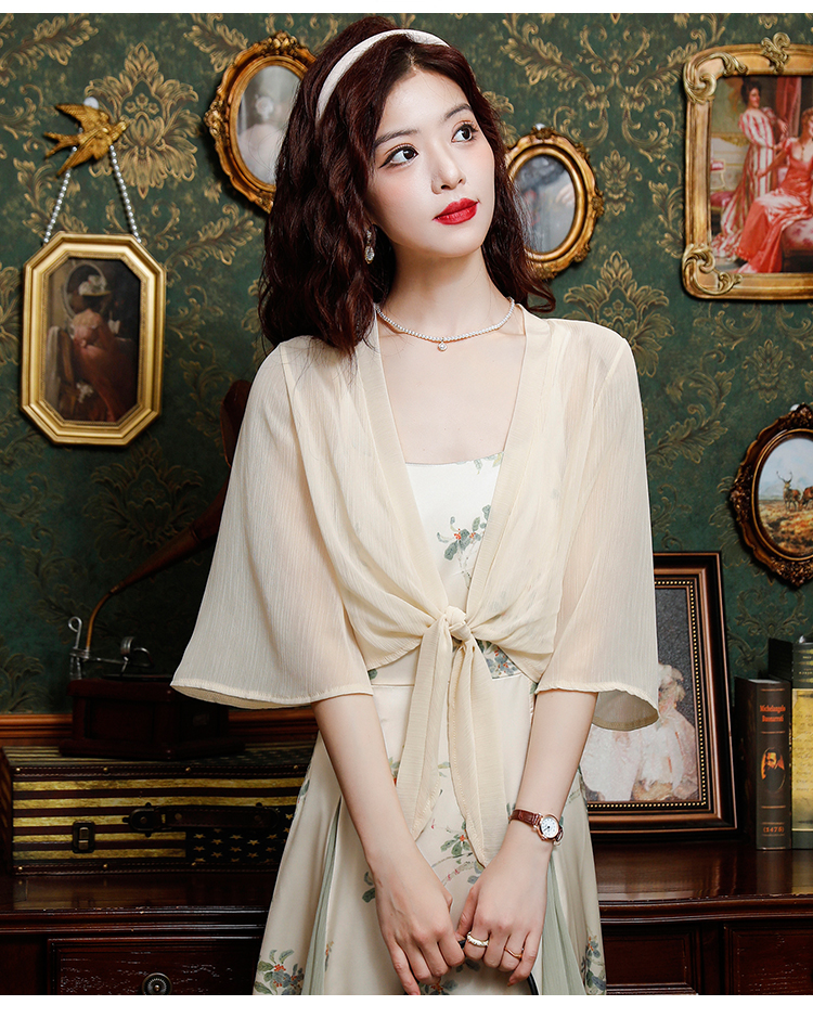 小披肩外搭女夏季雪紡百搭防曬衣配吊帶裙中袖開衫坎肩薄款短外套