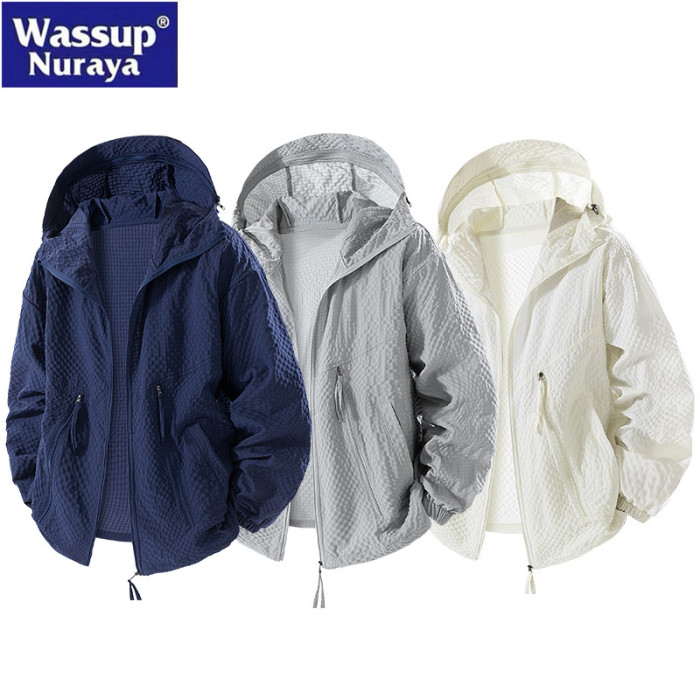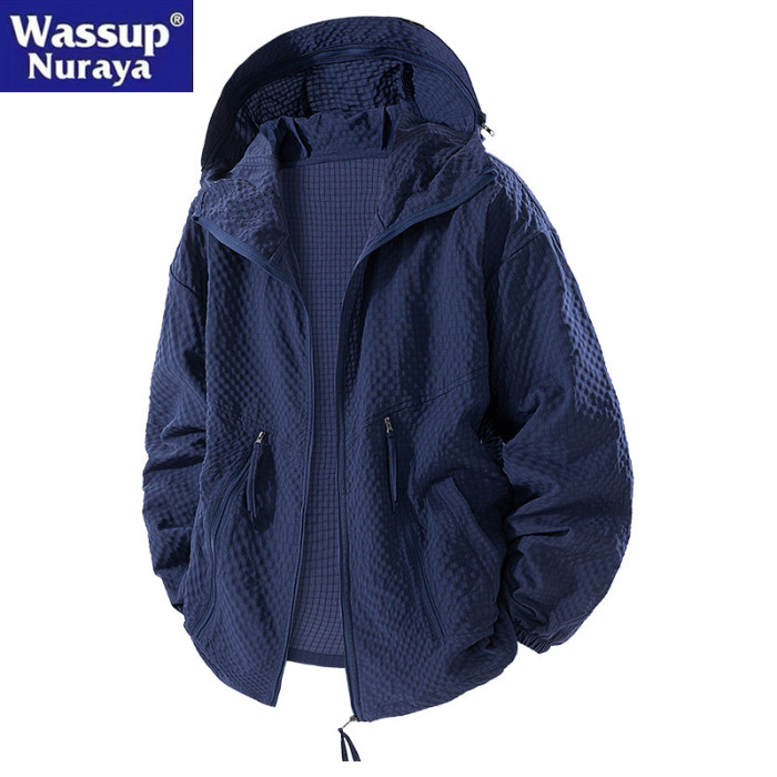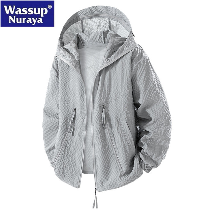 WASSUP Nuraya潮牌美式連帽防曬衣男夏季防紫外線速乾泡泡紗外套