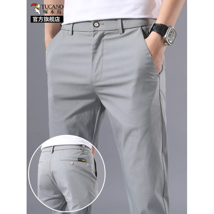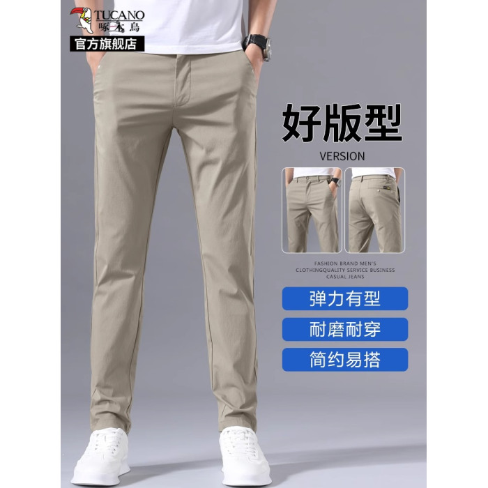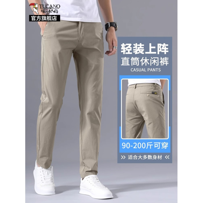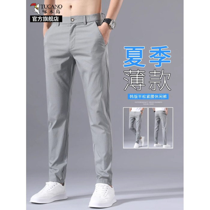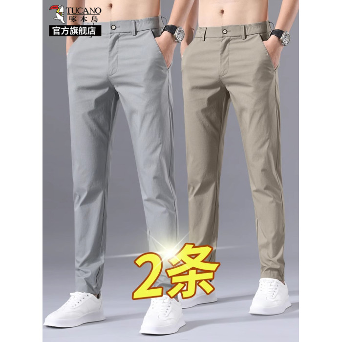 啄木鳥男士冰絲休閒褲夏季薄款2025新款寬松商務直筒西裝長褲子K