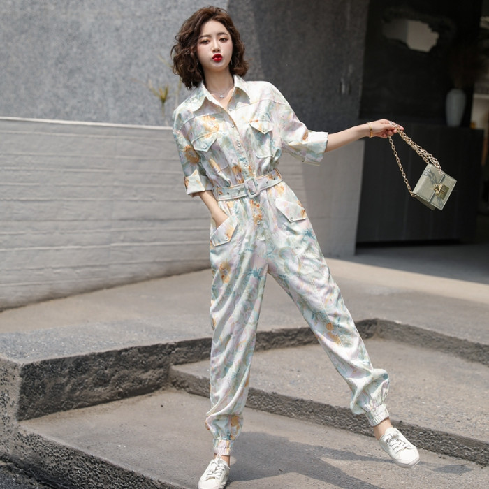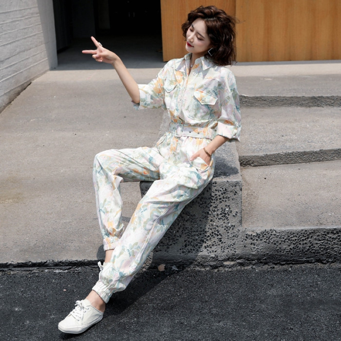 VSETAMELLE碎花連體褲女夏季薄款設計感小衆高級感顯瘦印花連體衣