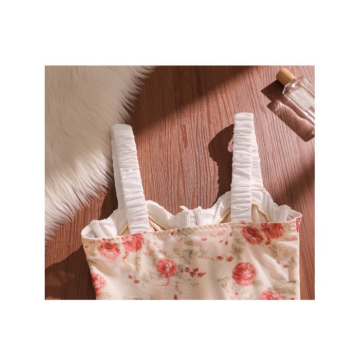 性感印花魚骨吊帶背心女連體衣下方按釦設計辣妹美背打底抹胸上衣