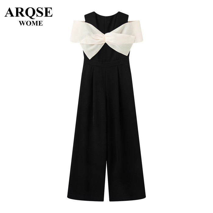 艾諾絲詩曼2025年夏季新款時尚氣質蝴蝶結無袖濶腿連體衣褲女2902