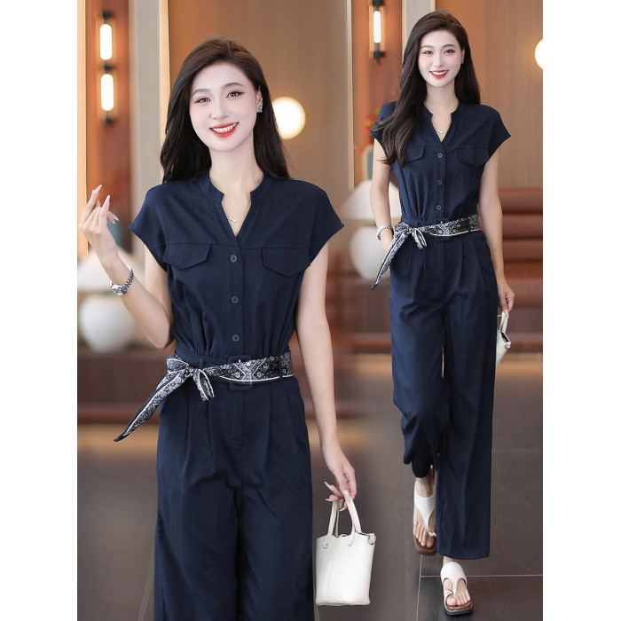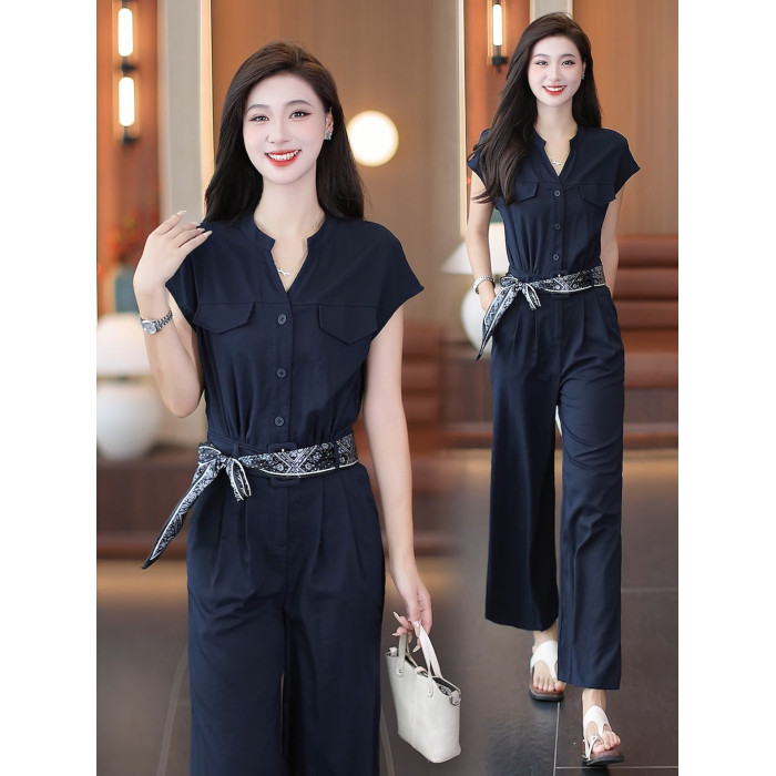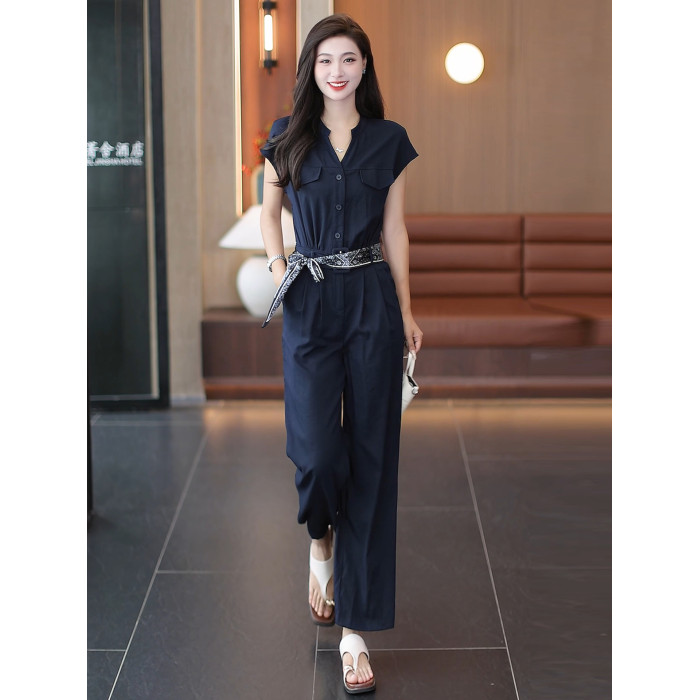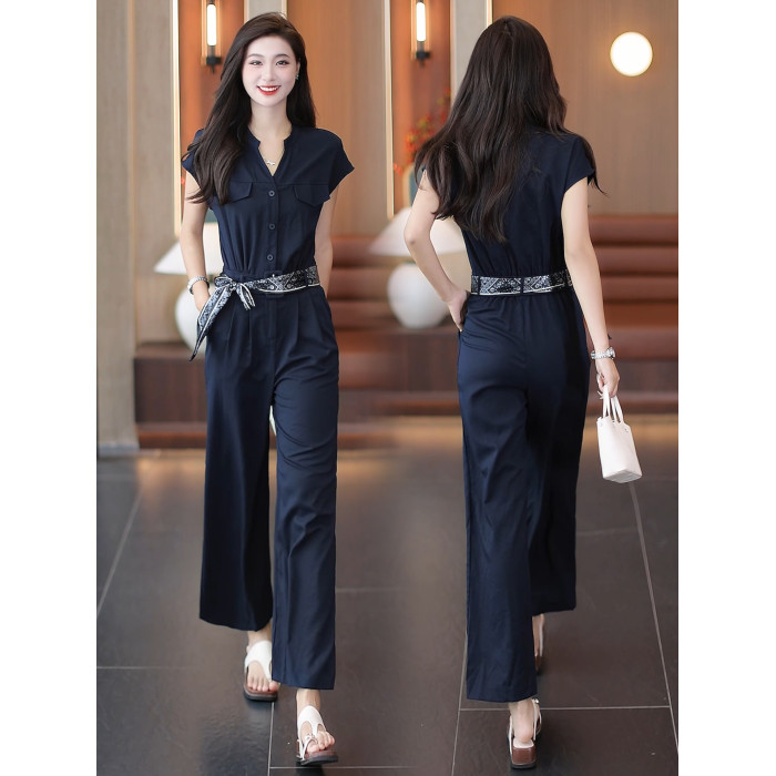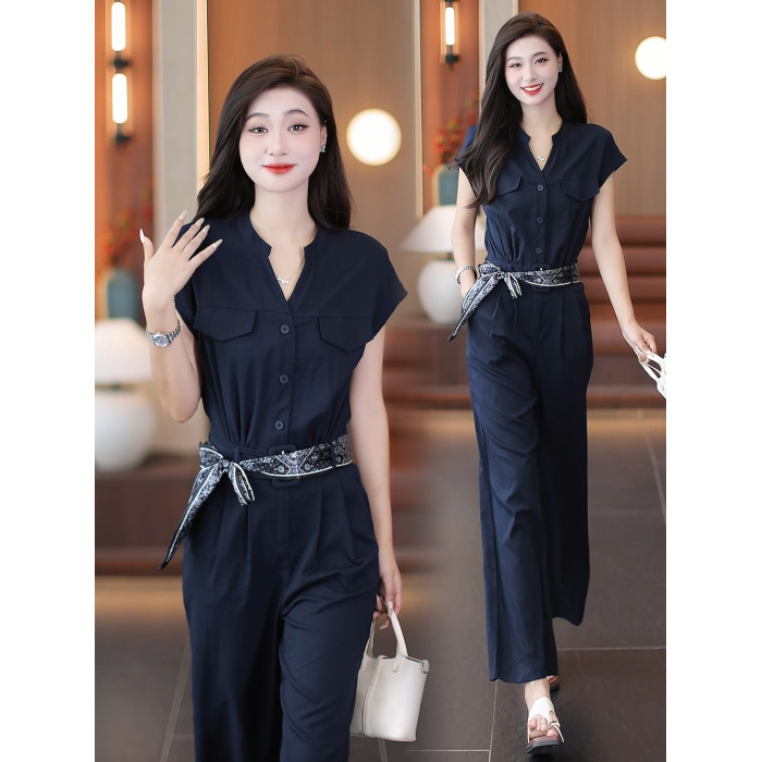 時尚氣質連體褲女2025夏季新款收腰顯瘦連體衣減齡休閒濶腿褲套裝