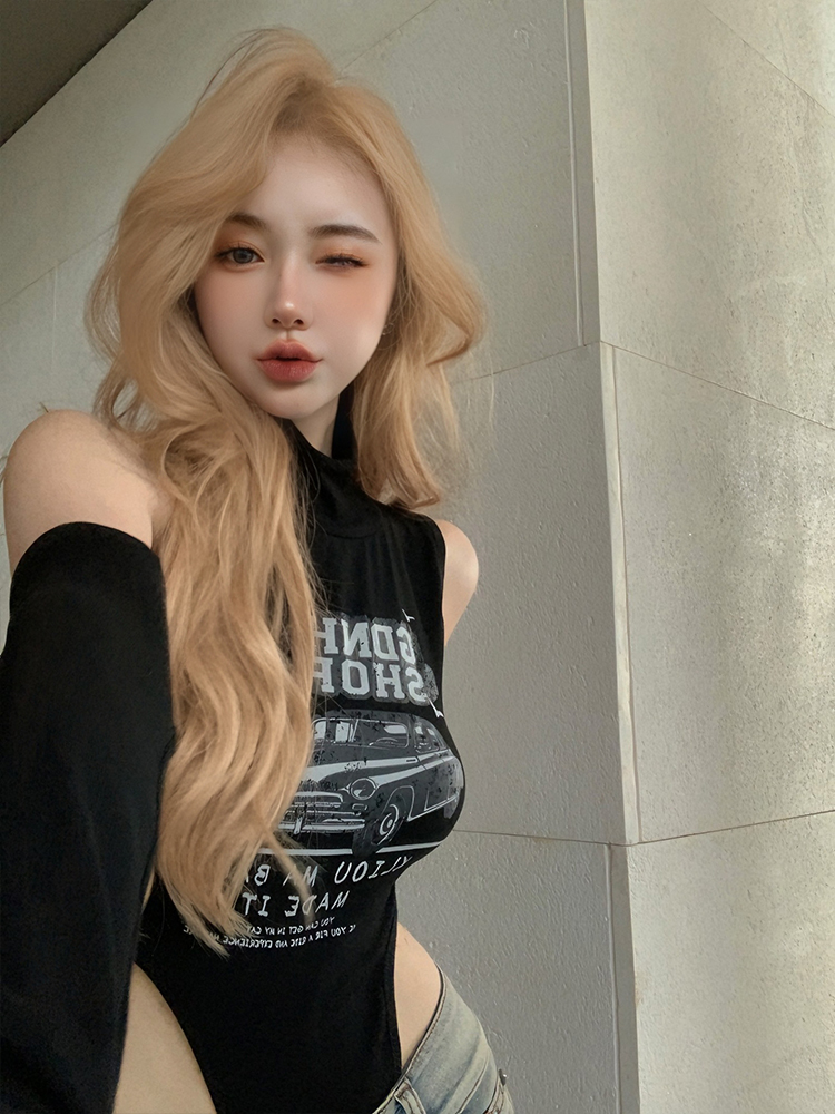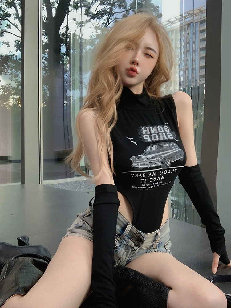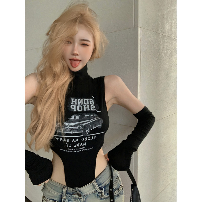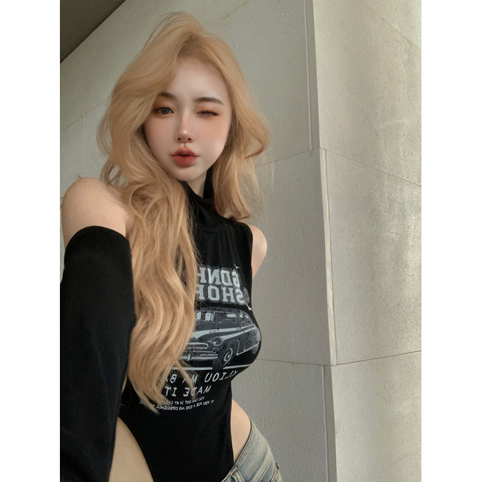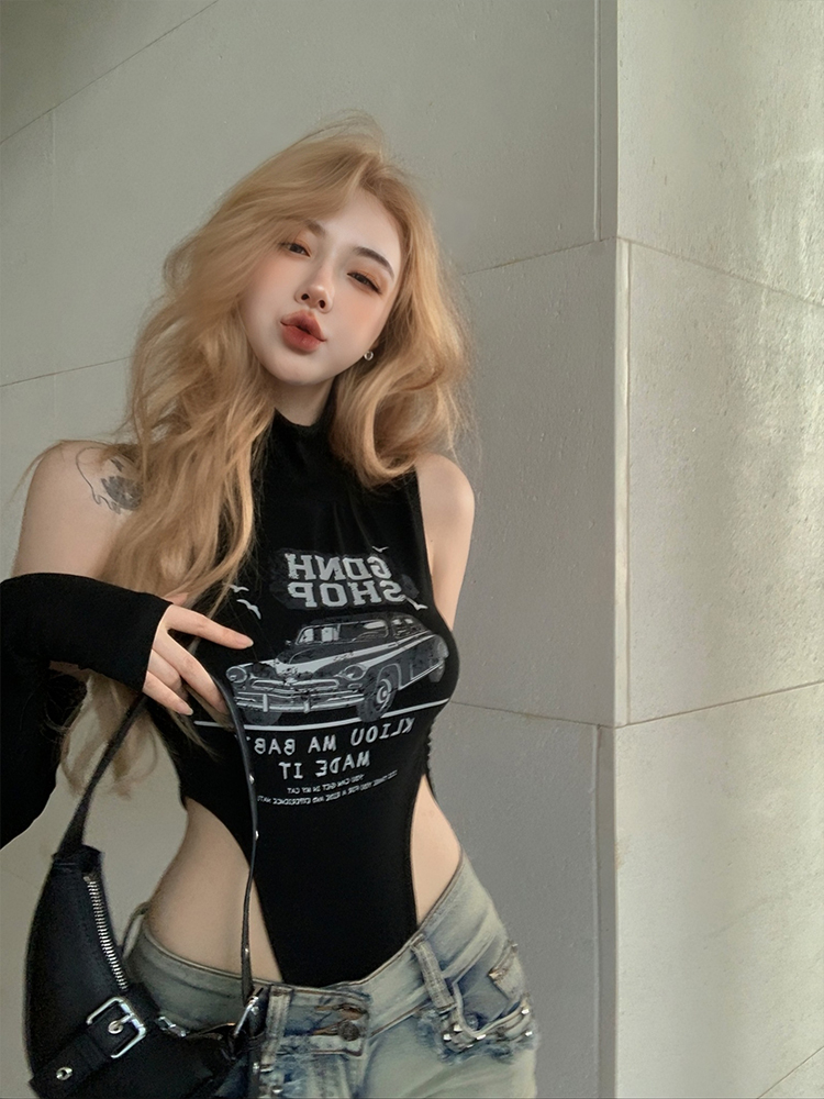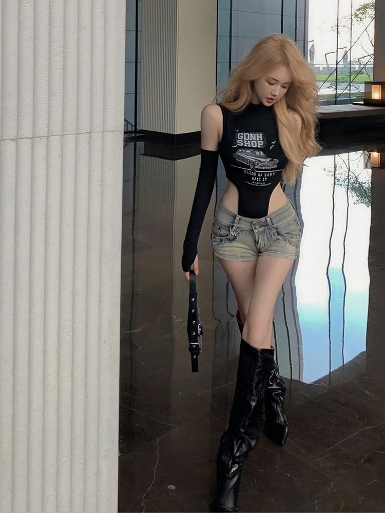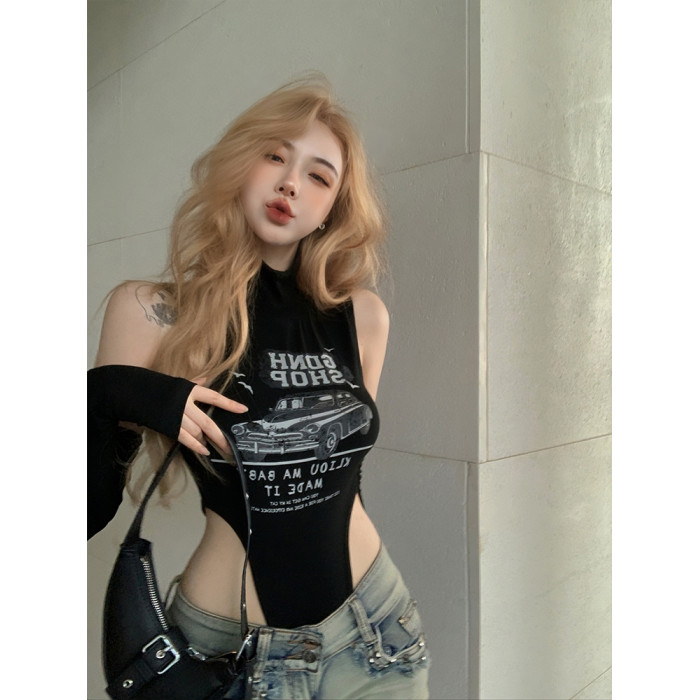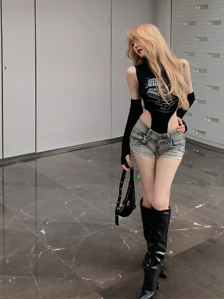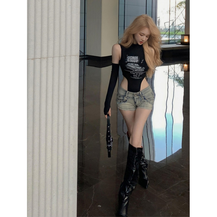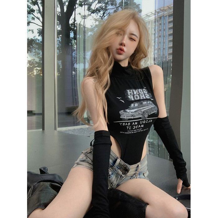 美式辣妹性感高叉連體衣緊身夜店演出跳舞音樂節網紅演唱會上衣女