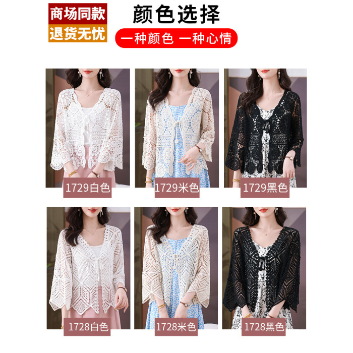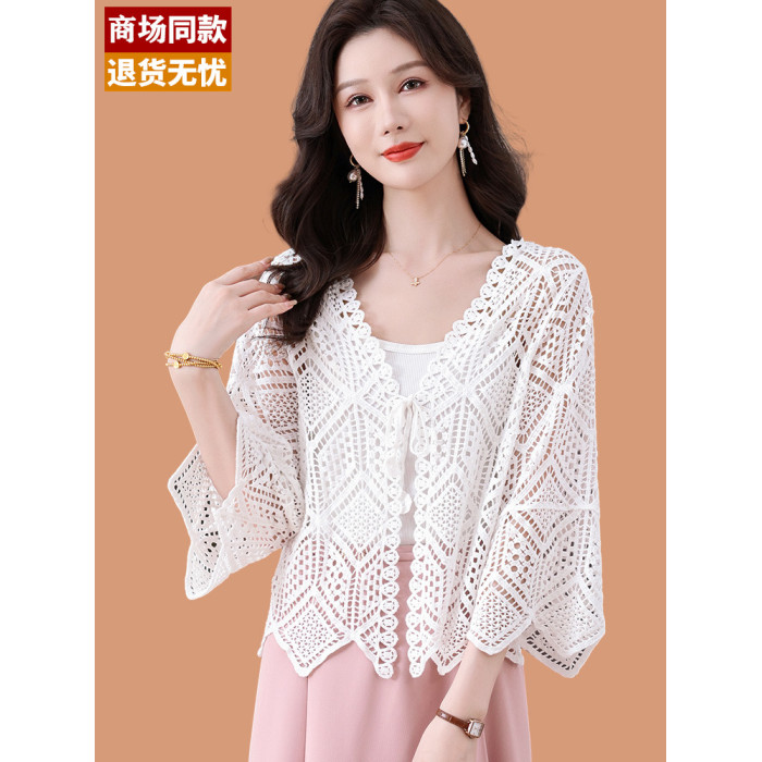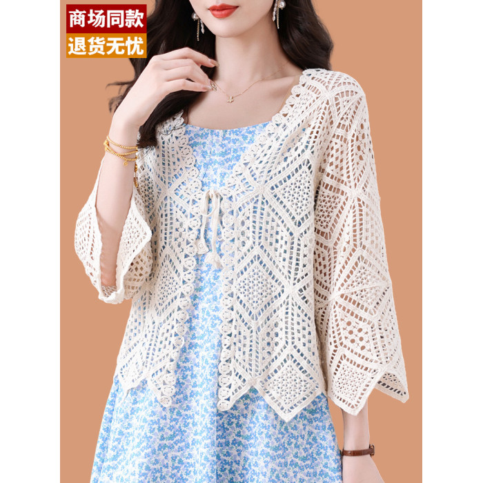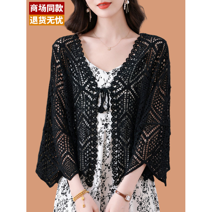 冰絲披肩防曬衣女2025新款夏季薄款外搭開衫配裙子七分袖鏤空網衫