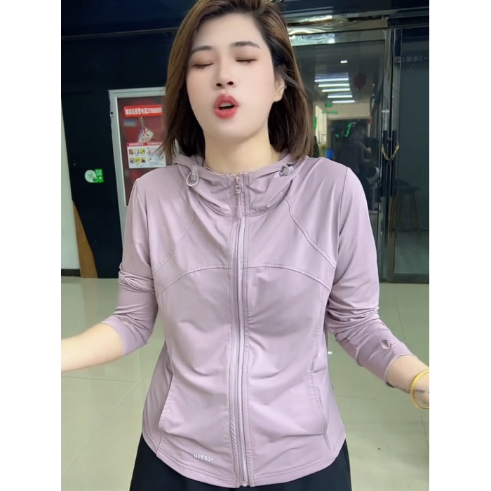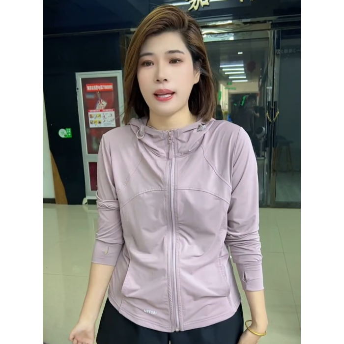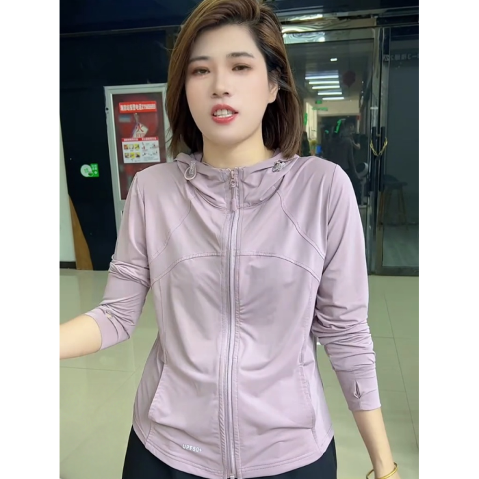 夏季純色連帽長袖防曬衣女寬松顯瘦百搭休閒拉鍊外搭日常通勤上衣