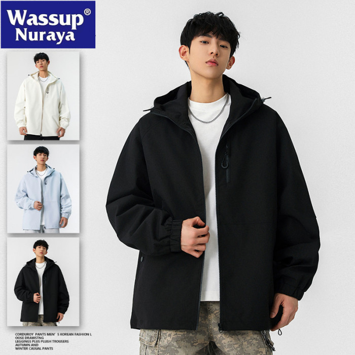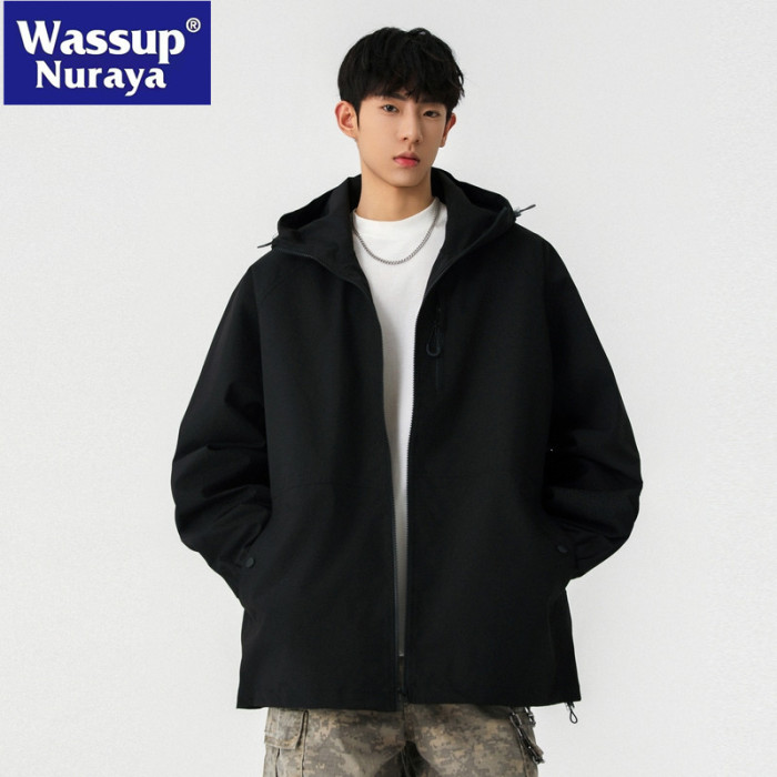 WASSUP NURAYA春秋美式工裝外套男士新款連帽休閒青年夾克沖鋒衣