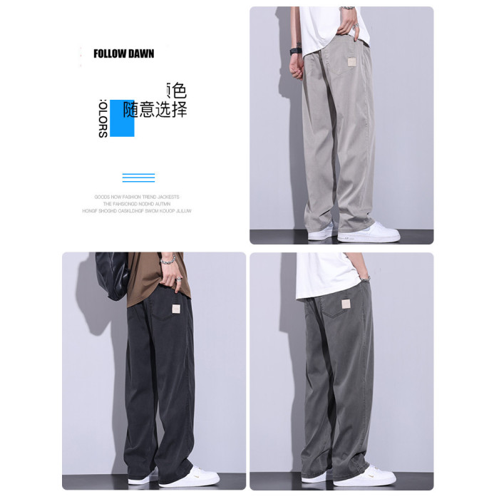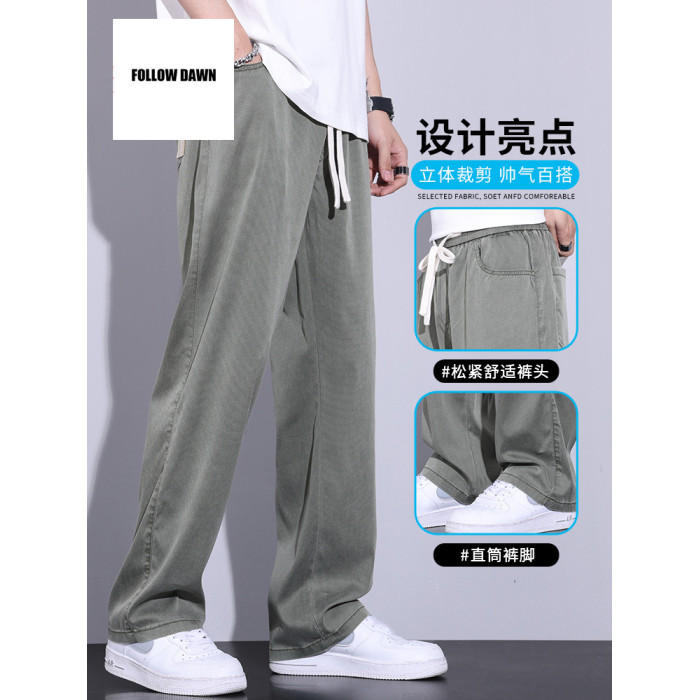 天絲休閒褲男士寬松直筒濶腿男生春夏季薄款潮牌冰絲長褲
