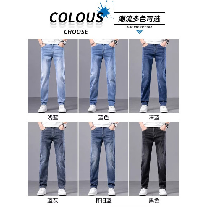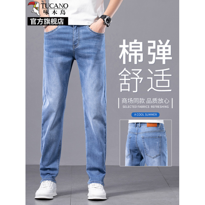 啄木鳥夏季薄款牛仔褲男士冰絲褲子2025新款休閒寬松直筒長褲K