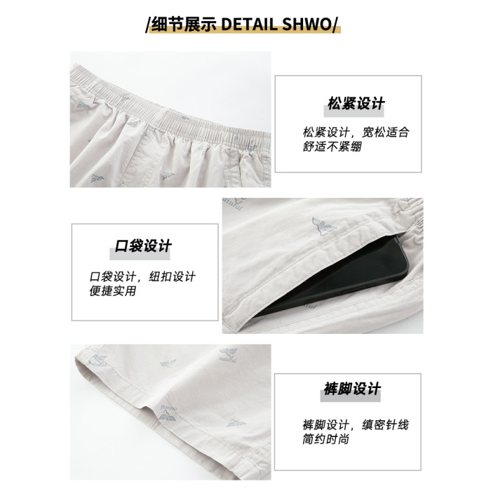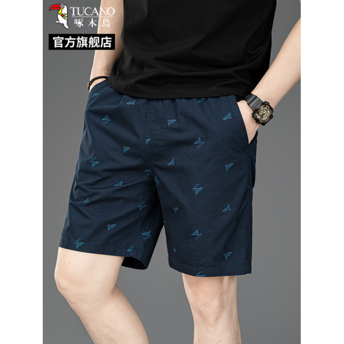 啄木鳥100%純棉短褲男士夏季新款寬松直筒休閒運動褲大碼褲子男C