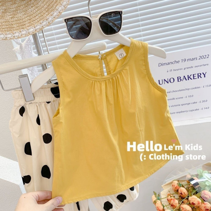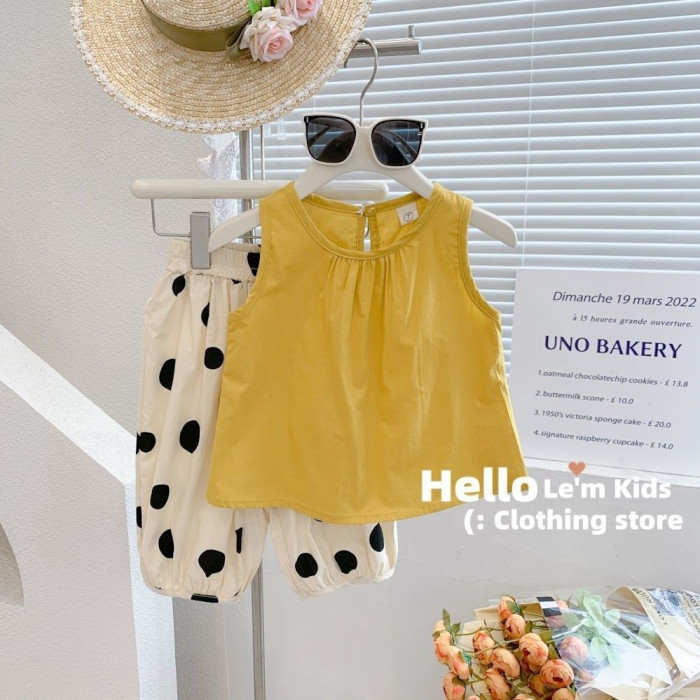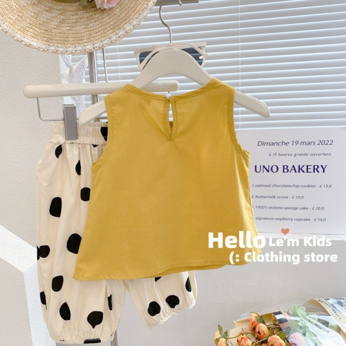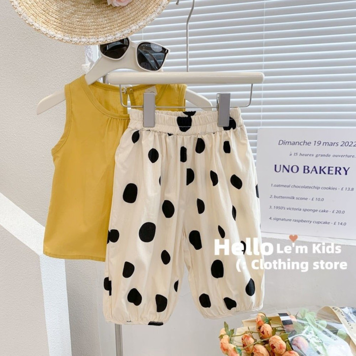 女童套裝夏季小圓點兒童裝可愛學院風薄款時尚背心兩件套0041A087