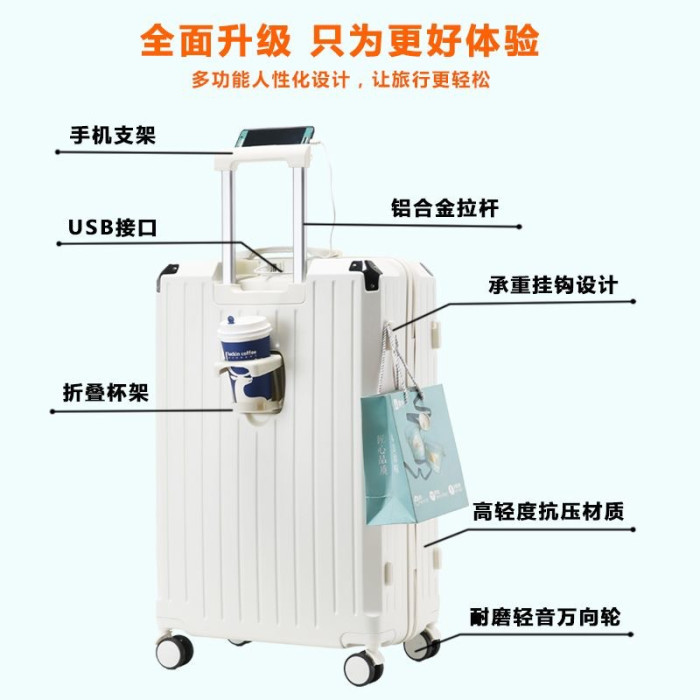 拉桿箱多功能行李箱水杯架旅行箱男密碼箱可充電大容量女皮箱耐用