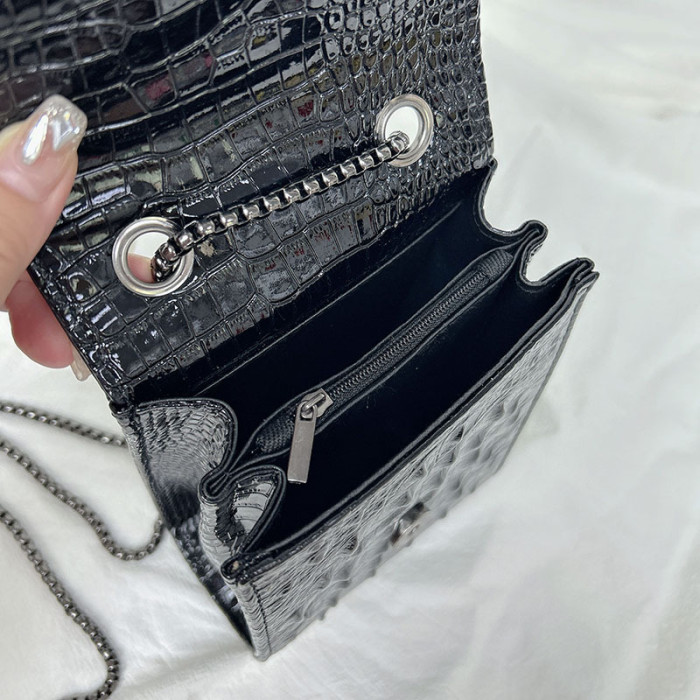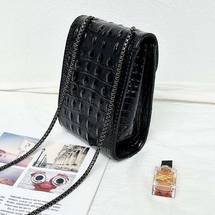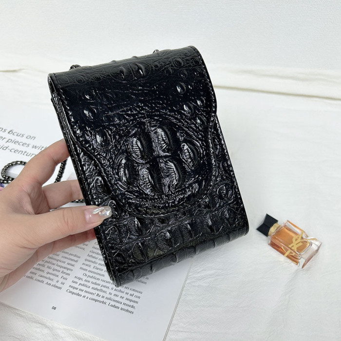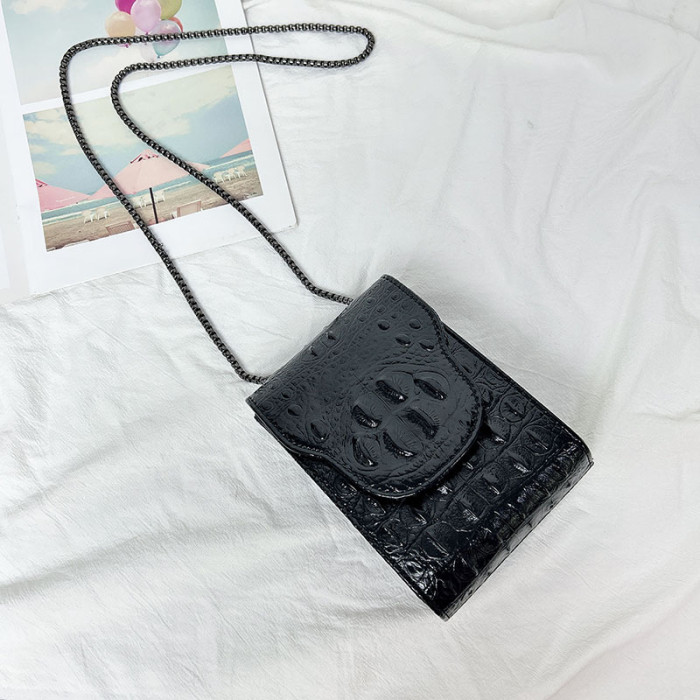 復古質感鱷魚紋手機包迷你小包鏈條單肩斜後背包高級感包包女