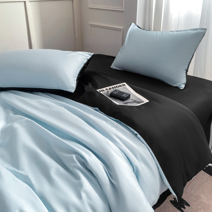 天藍墨黑純色雙拼冰絲床單四件套夏季涼感舒適被套被單宿舍三件套